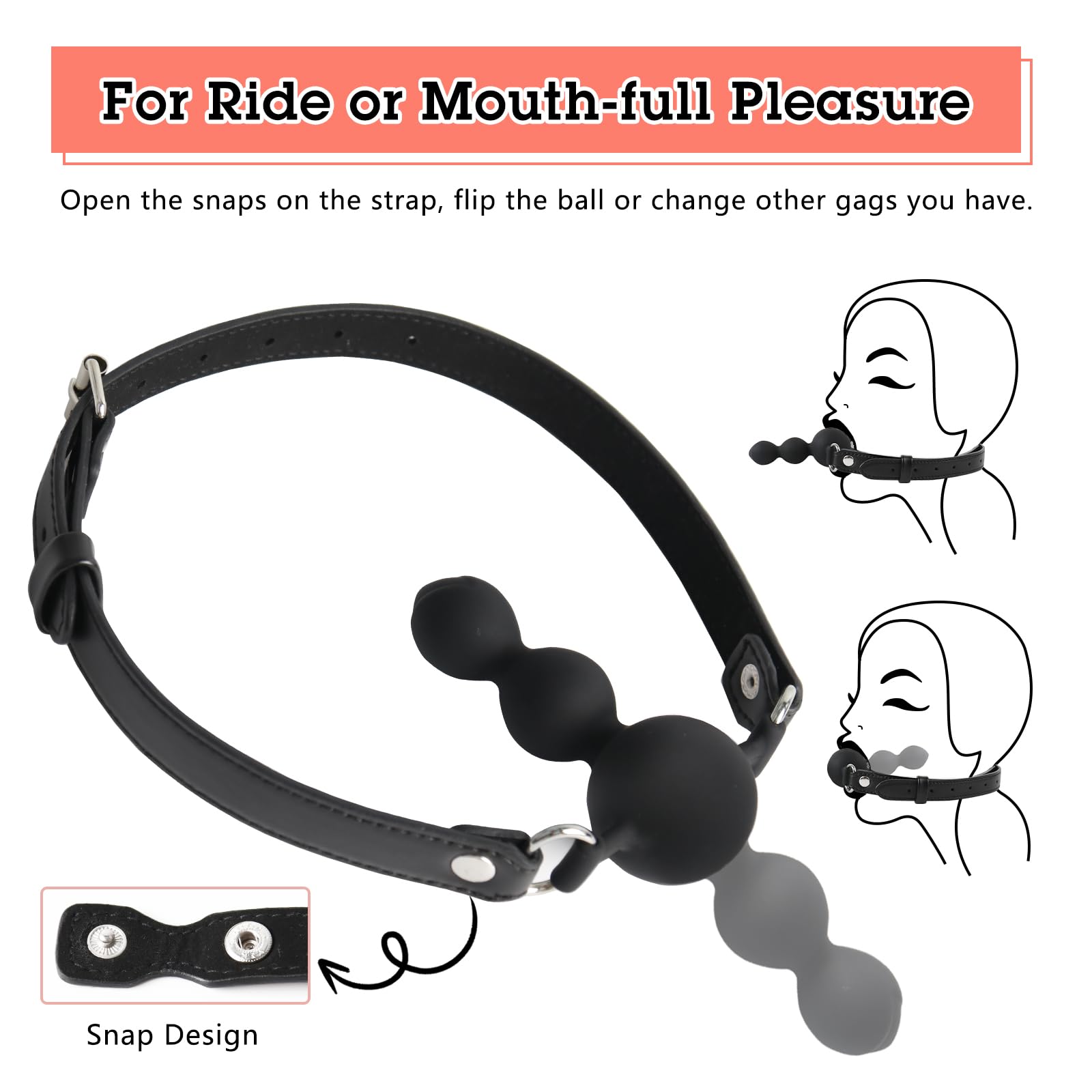 Force Mouth Gag Enjoy dual pleasure for you and your partner with this lips gag. While there's pleasure, already, in having your partner's mouth stuffed with a gag. The beads gag takes things a step further by including a plug in the front. The dildo allows for a new level of oral love. The gag uses a heavy-duty adjustable leather strap. Having a ball-gag in your mouth during anal sex and bdsm. No matter a penis dildo or a ring gag with a hole - often used for deepthroat oral sex. The gag is not only used to keep quiet, but also a big help you to overcome the pain when you are spanked or cosplay. Size: Neck strap adjusts from 17.3 to 25 inches around Beads has 4 inch insertable length Gag has 1.5inch max diameter Material: Leather, Metal, Silicone Color: Black Combines the bondage, ball gag with a front facing dildo