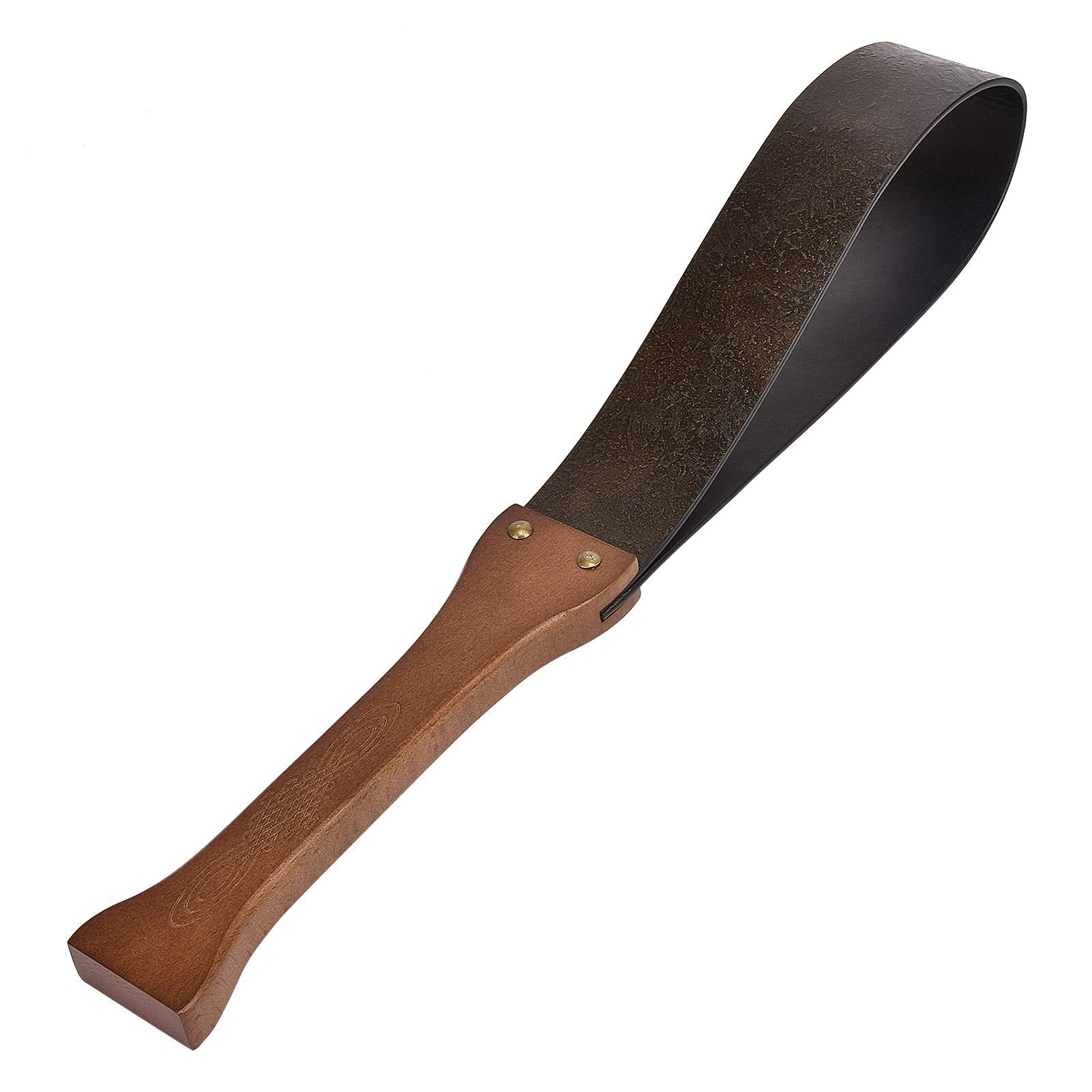 Q: How does the paddle create sound during use?A: The two layers of leather allow for a loud flapping sound when used, enhancing the sensory experience.