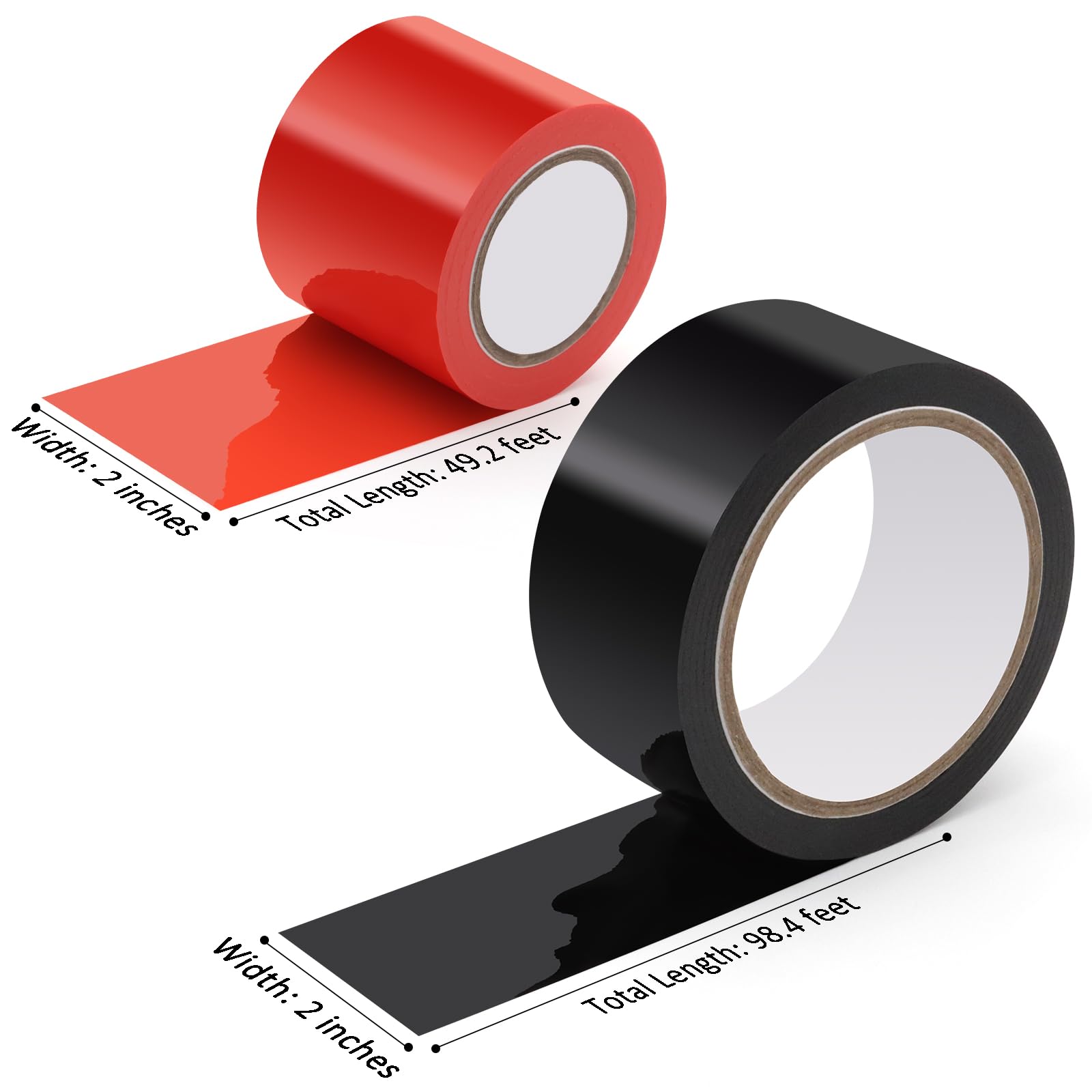 Q: How long is the bondage tape?A: The total length of the KISSHAKE Bondage Tape is 147 feet, consisting of two rolls: 98 feet of black tape and 49 feet of red tape.