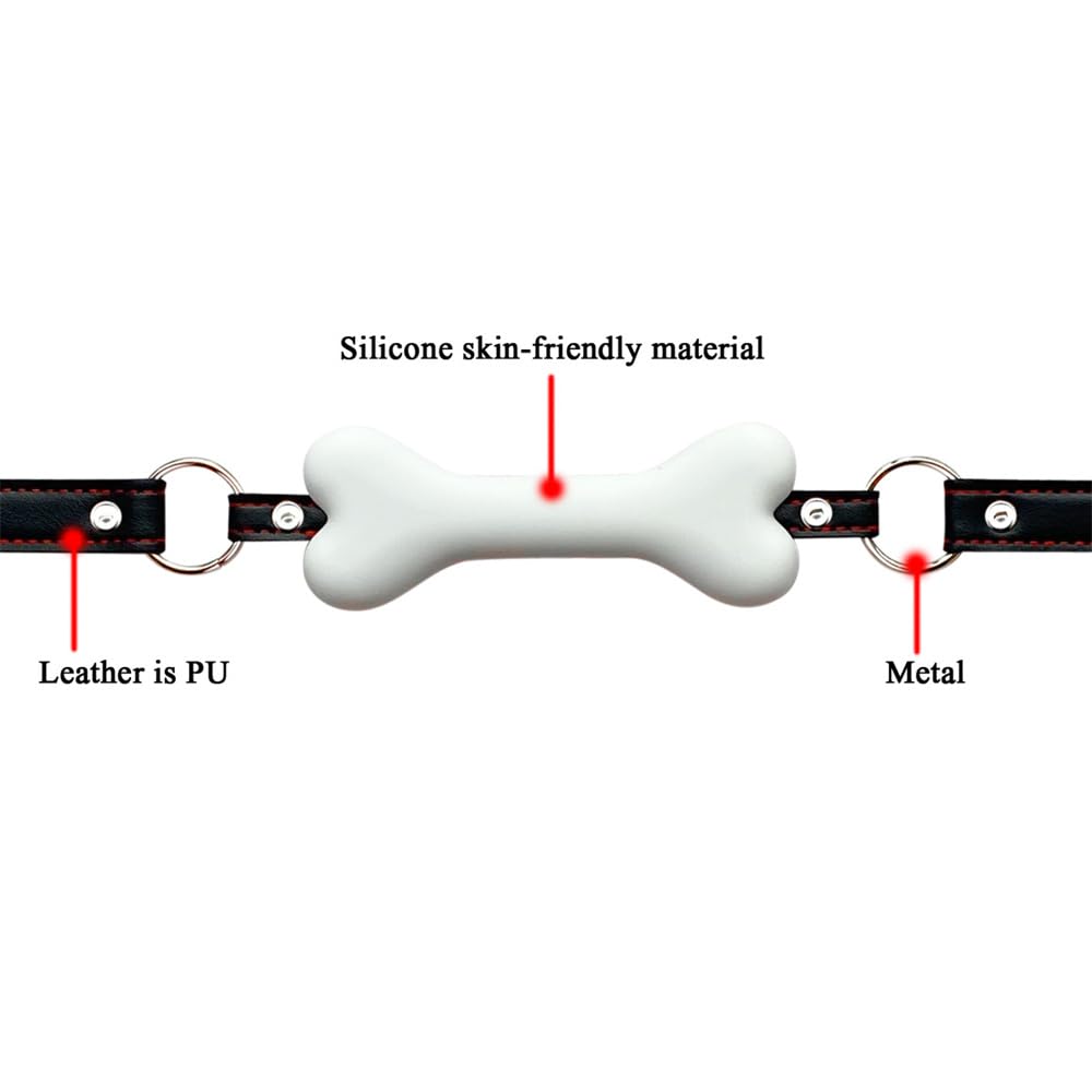 Q: What material is the Pfylinqo Dog Bone Mouth Gag made of?A: The Pfylinqo Dog Bone Mouth Gag is made from 100% healthy silicone, which is soft and safe for the body, and faux leather for the straps.