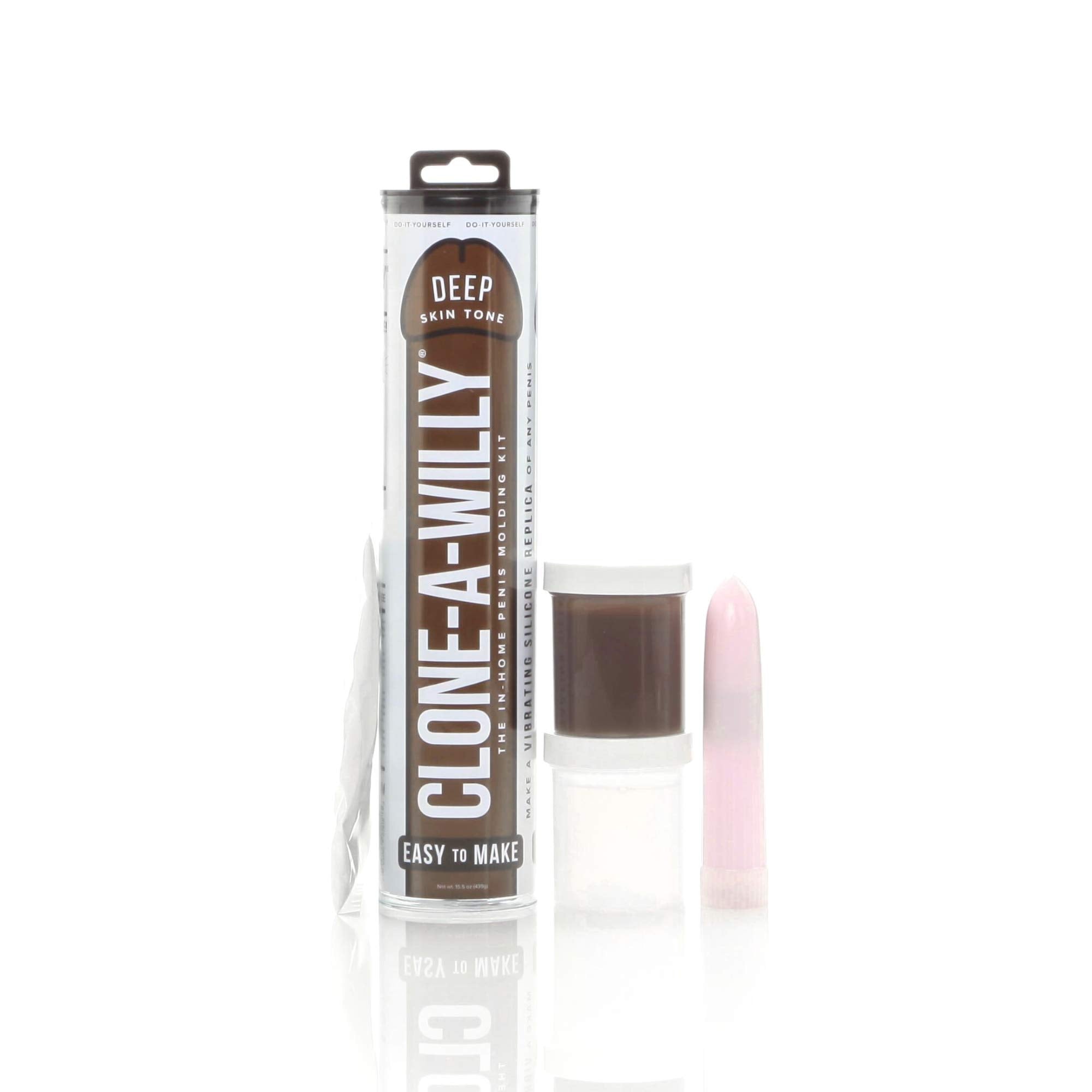 Whether it's your penis or your partner's, your new Clone-A-Willy kit will provide everything you need to mold your very own homemade dildo. That's right, this cock casting kit lets you make an EXACT vibrating silicone replica of ANY penis in the comfort of your own home. Get ready, because our medically tested molding gel captures incredible life-like detail, making it the most personalized dildo casting kit on the planet. It's super fun and easy to do! Clone-A-Willy Kits are totally safe. The only material that comes in contact with your skin during the molding process is a molding powder derived from seaweed. Your finished dildo is then created from a body-safe, platinum cure silicone - the gold standard of sex toys. Each Homemade Dildo Kit comes with everything you need: *Body Safe Deep Skin-Tone Silicone *One Bag of Algae Based Molding Powder *Molding Tube *Vibrating Unit (Requires 1 AA battery that is NOT included) All you need is a little motivation from your partner, and you're ready to replicate your favorite member - prepare to have some fun!
