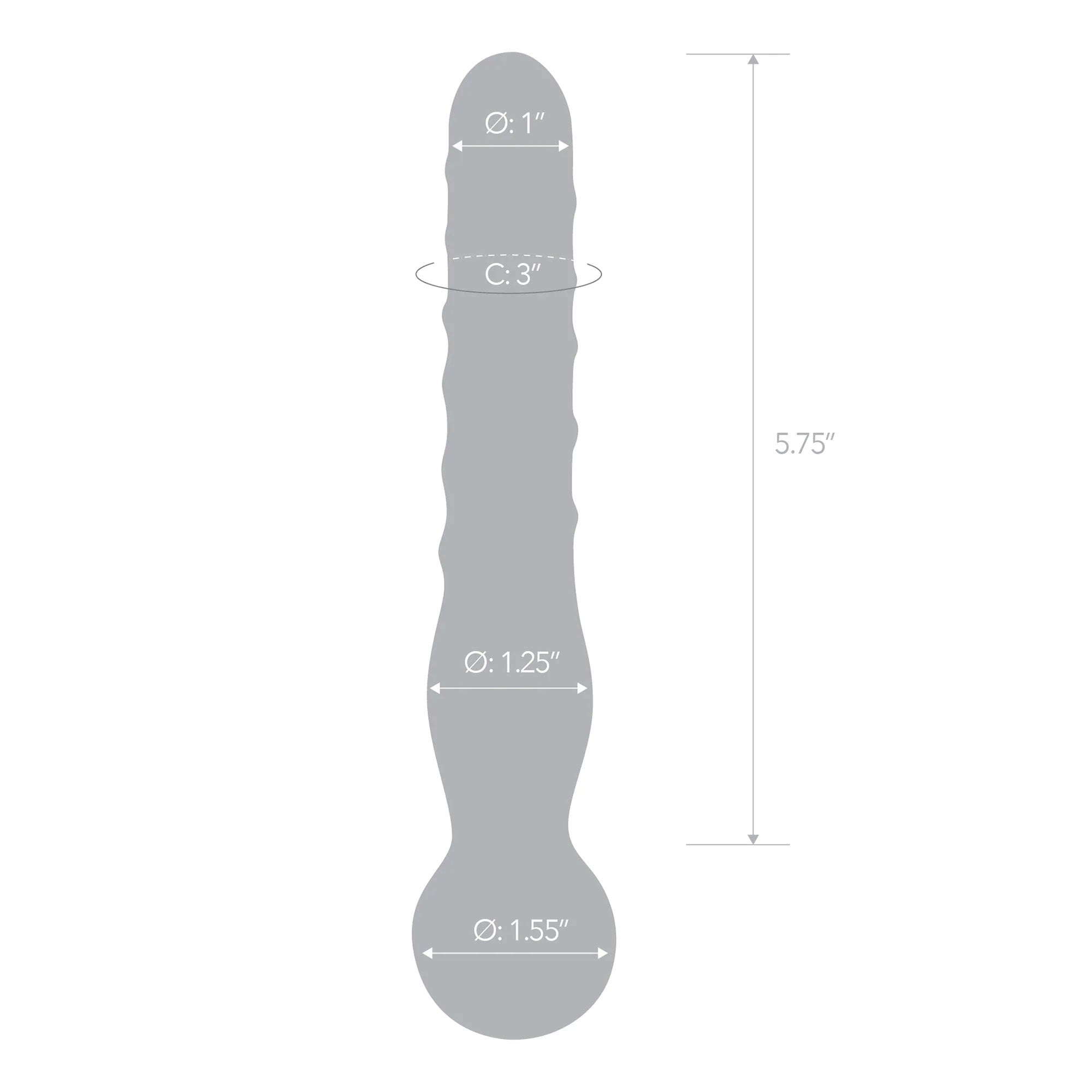 Q: What are the dimensions of the Gläs Joystick?A: The dildo measures 7.87 inches long and 1 inch wide, making it suitable for beginners.