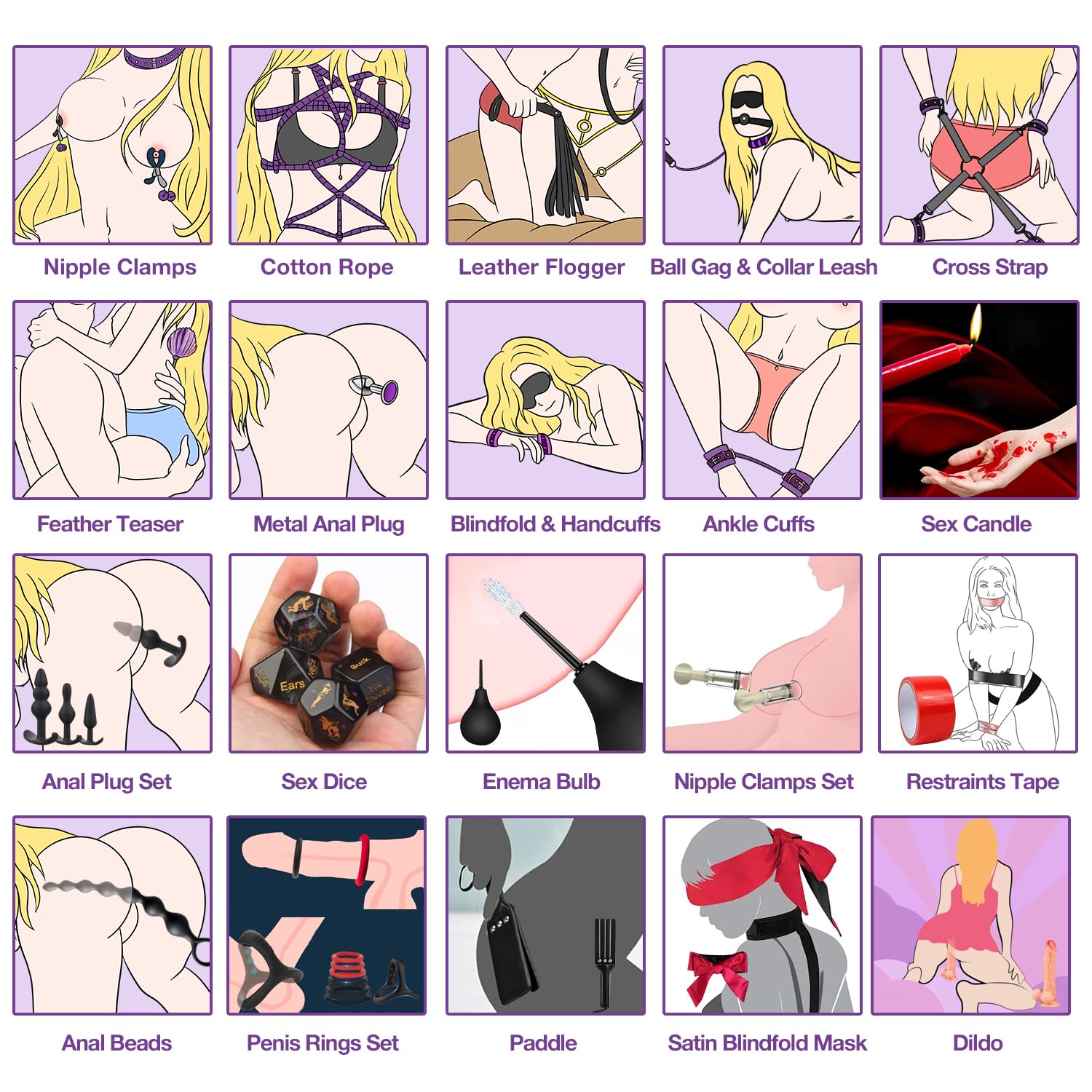 Q: What types of games can be played with this kit?A: This kit can be used for various adult games that involve bondage, role-play, and sensory play, providing a range of experiences for users.