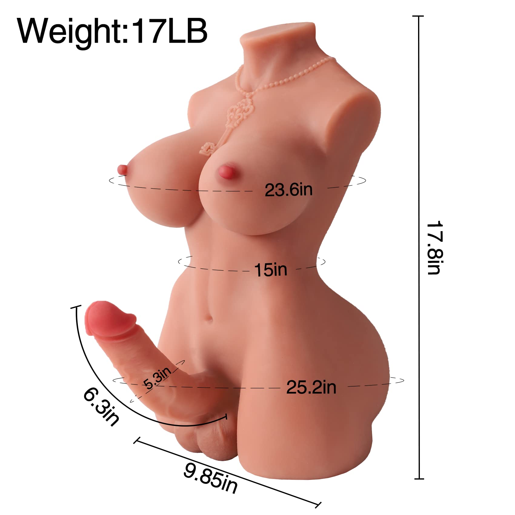 Q: What is the size of the dildo on the Shemale Sex Doll?A: The doll features a realistic dildo measuring 6.3 inches in length and 5.3 inches in girth, designed to provide lifelike sensations.