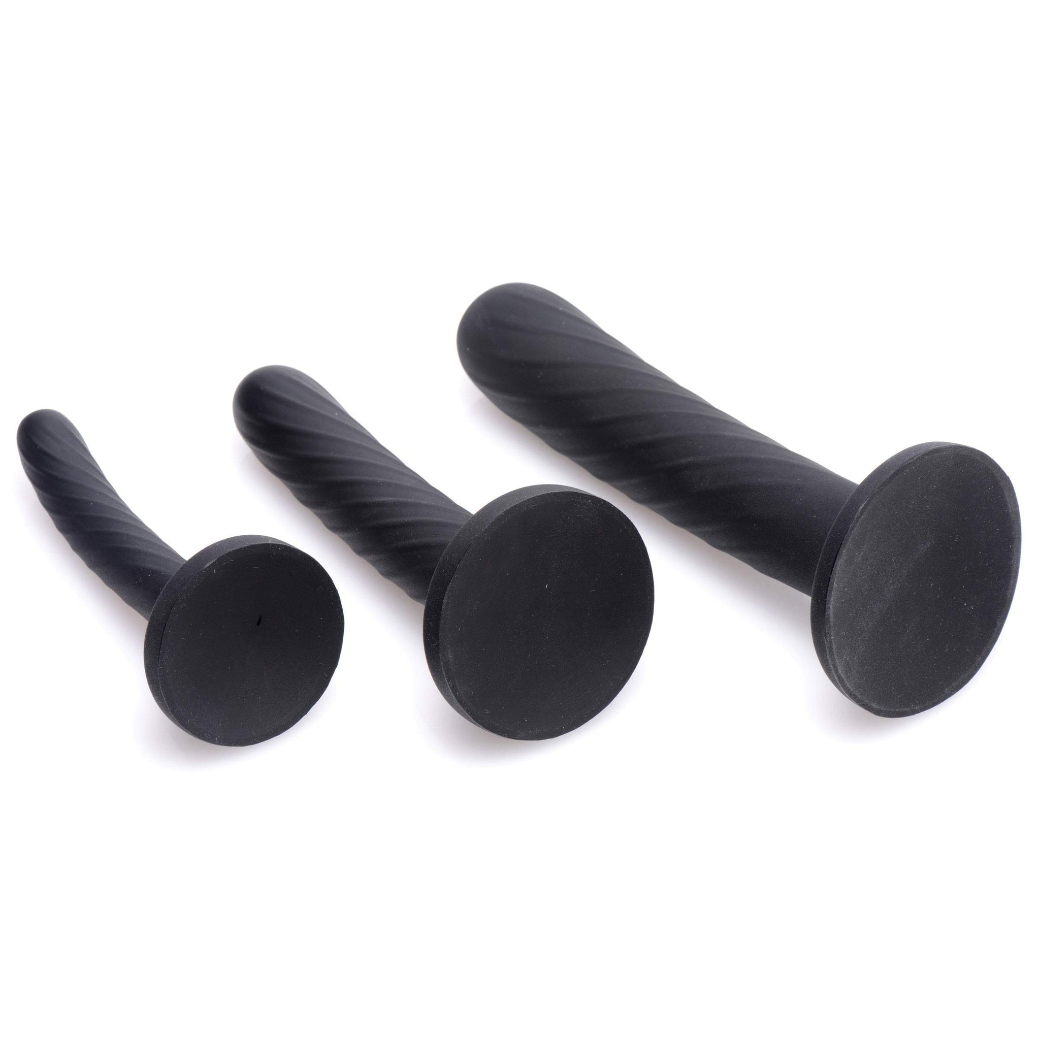 Subtle swirled ridges protrude for a delicious texture as you penetrate | Suction cup bases make them perfect for solo use | Made of quality silicone material, these shafts are firm, yet flexible | Country of origin is China