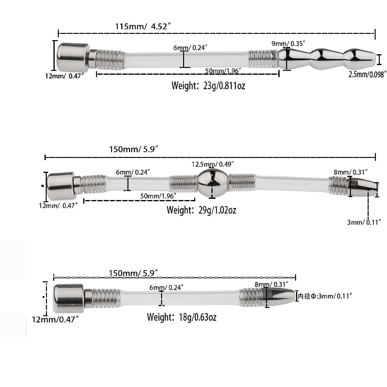 Q: What materials are used in the urethral trainer set?A: The set is made of high-quality metal and silicone, which are non-toxic, harmless, and safe for intimate use.