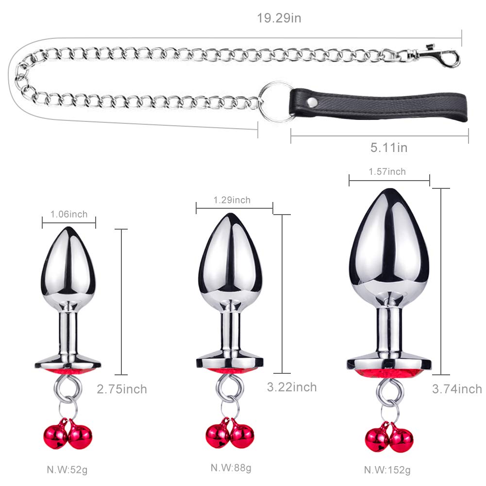Anal Plug Trainer Kit is tapered head design, and the tail is decorated with red jewelry. It is beautifully designed, anti-oxidant, and the red jewelry gives you a constant feeling, allowing you to experience unlimited sexual stimulation. Great for flirting with foreplay. If you like BDSM games, you can use our anal plugs for anal training. If you are a lesbian, our anal plug is also a good choice. Product Specification: Size: Big: Total length: 3.74 inch Width: 1.57 inch Weight: 5.36 oz Medium: Total length: 3.22 inch Width: 1.29 inch Weight: 3.1 oz Small: Total length: 2.75 inch Width: 1.06 inch Weight: 1.83 oz Traction Chain length: 19.29 inch Material: High-quality aluminum alloy Waterproof: YES Color: Silver + Red jewelry Package list: 1 x Anal Plug Trainer Kit Note: 1.Before and after use, please pay attention to clean the anal plug. 2.Using a lubricant to enhance sexual pleasure is a great idea. It is a must-have sex toy for fetish love games and anal play. After service: All of our products will be neatly packaged in a discreet package. If the item has any problem, please contact us for a replacement or refund. Thanks.