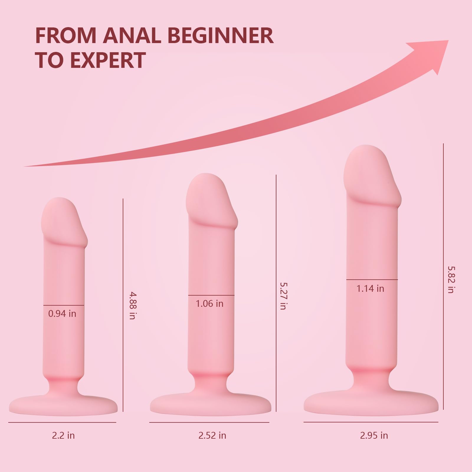 Q: What sizes are included in the Butt Plug Pink Dildo Trainer Kit?A: The Butt Plug Pink Dildo Trainer Kit includes three anal plugs of different sizes, designed to gradually advance from small to large for optimal comfort and training.
