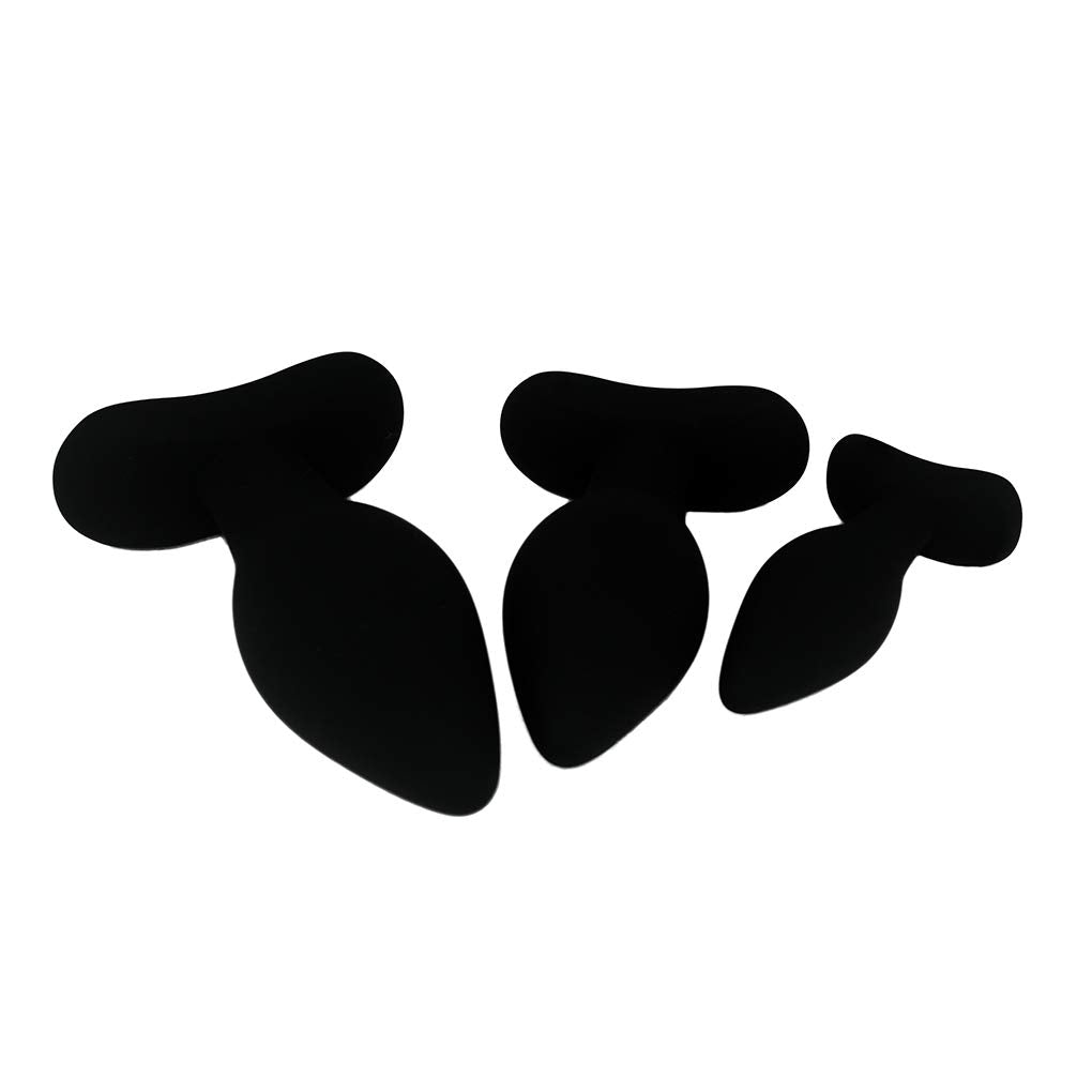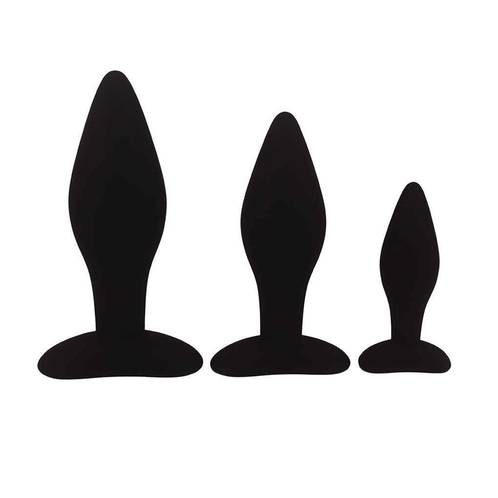 Eastern Delights Anal Sex Trainer 3PCS Kit Black Silicone Butt Plugs SOLID DESIGN WITH PERFECT SILICONE Detailed Size information 1. Small size: 90mm/3.54 '' total height, widest width 28mm/1.1 '', base width 44mm/1.73 '', weight 37g/1.3 oz 2. Medium size: 122mm/4.8 '' total height, widest width 40mm/1.57 '', base width 67mm/2.64 '', weight 94g/3.3 oz 3. Big size: 139mm/5.47 '' total height, widest width 45mm/1.77 '',base width 77mm/3.03 '', weight 140g/4.9 ozCare Instruction after use Remove the toy carefully after use. Wash with warm water and very mild soap.