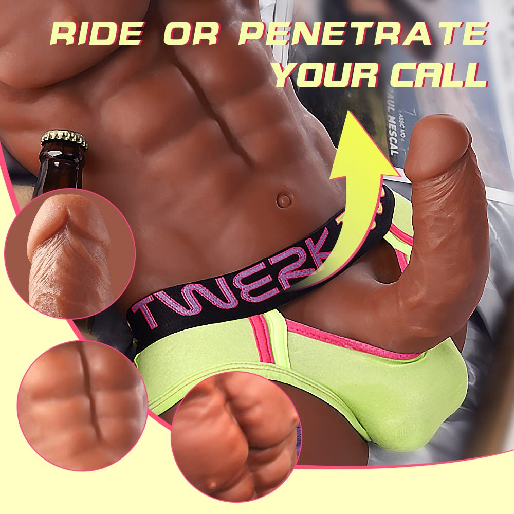Q: What features enhance the realism of the sex doll?A: The sex doll features detailed textures, including a realistic penis, testicles, and muscle lines, providing a lifelike appearance.