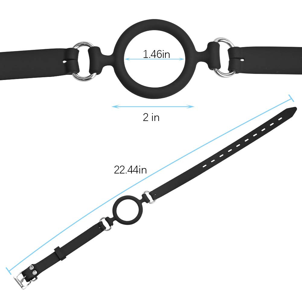 Q: What are the dimensions of the mouth gag?A: The mouth gag has a dimension of 2 inches in diameter, with an inner diameter of 1.46 inches.