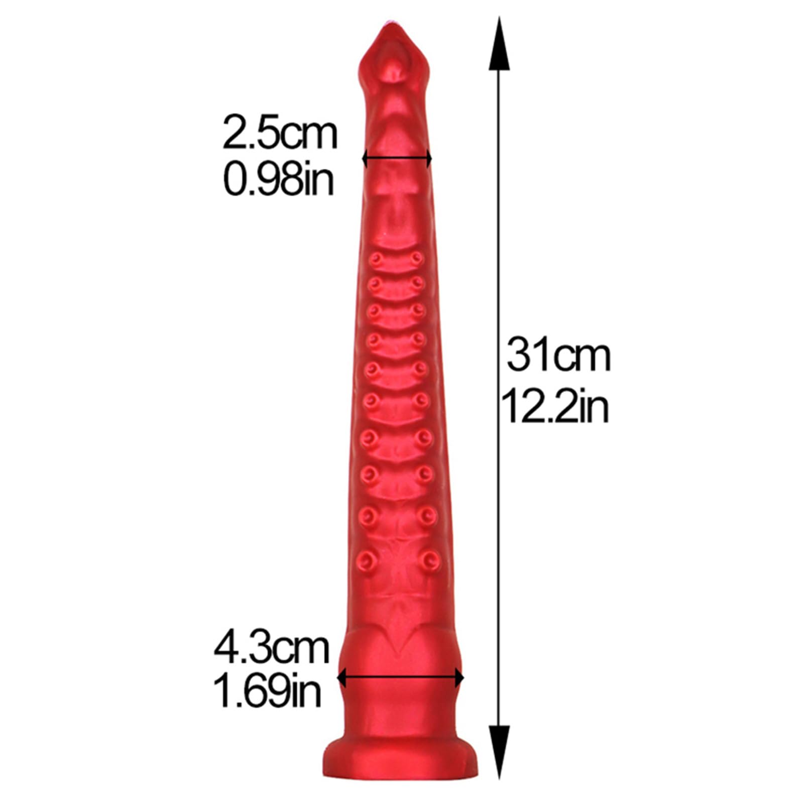 Q: What are the dimensions of the PONGGAO 12.2 Inch Large Dildo?A: The dimensions of the PONGGAO 12.2 Inch Large Dildo are 31 cm in length, 4.3 cm in width, and 2.5 cm in thickness (approximately 12.2 x 1.69 x 0.98 inches).