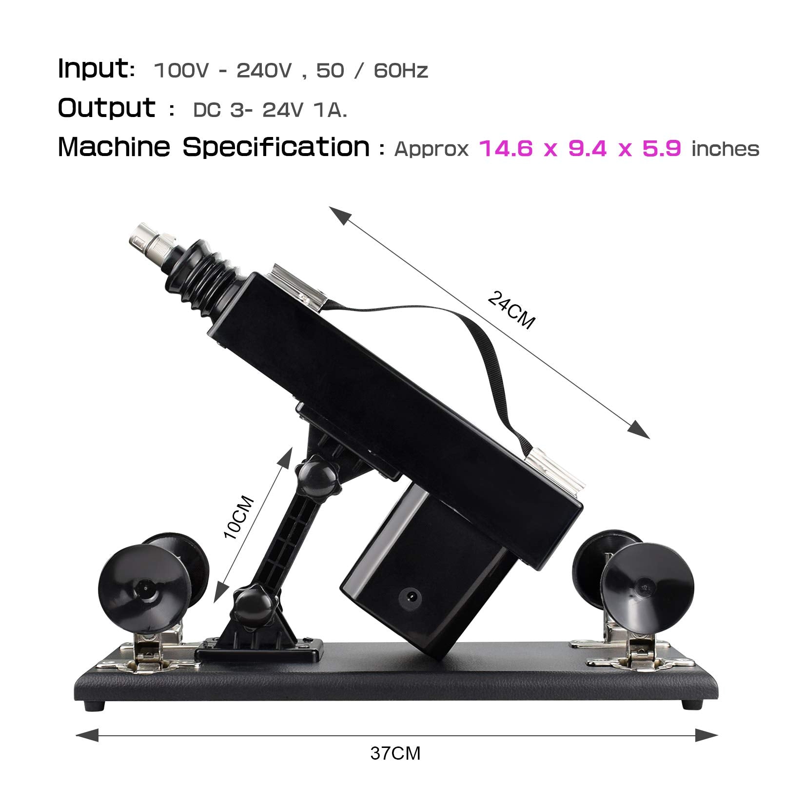 Input: AC 100- 240V, 50/60HZ. Output: DC 3- 24V 1A. Thrust speed: 0-450 times / minute Telescopic distance: 1.18inches Size: 14.5*9.45*5.9 inches Machine weight:6.6 lbs Adjusting Angle: 0-85 degree