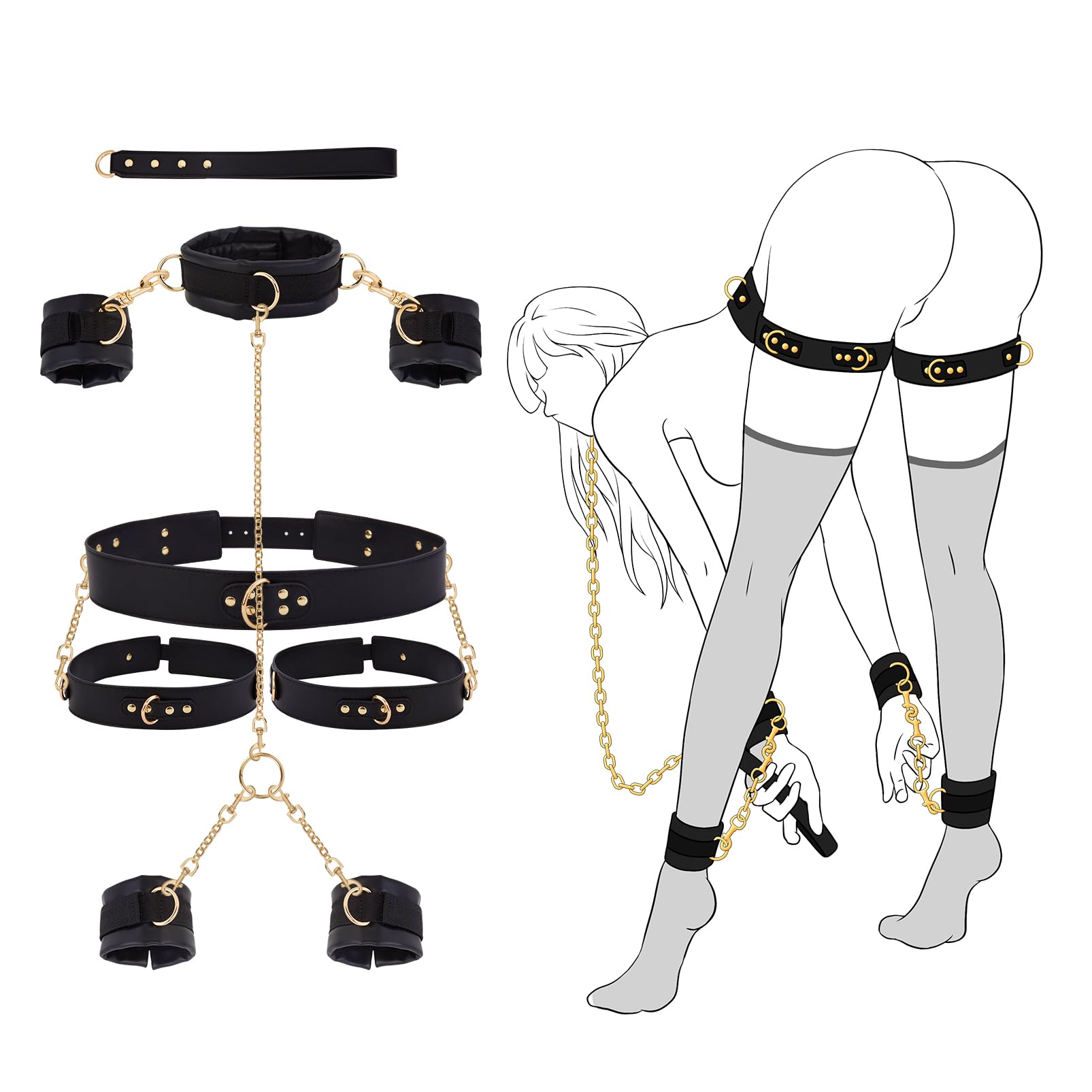 Sex Bondage BDSM Kit Restraints - UTIMI Adult Sex Toys for Couples Neck to Wrist SM Gear & Accessories Game 7PCS Sets with Adjustable Handcuffs Ankle Thigh Cuff Cross Waist Strap Traction Chain Collar