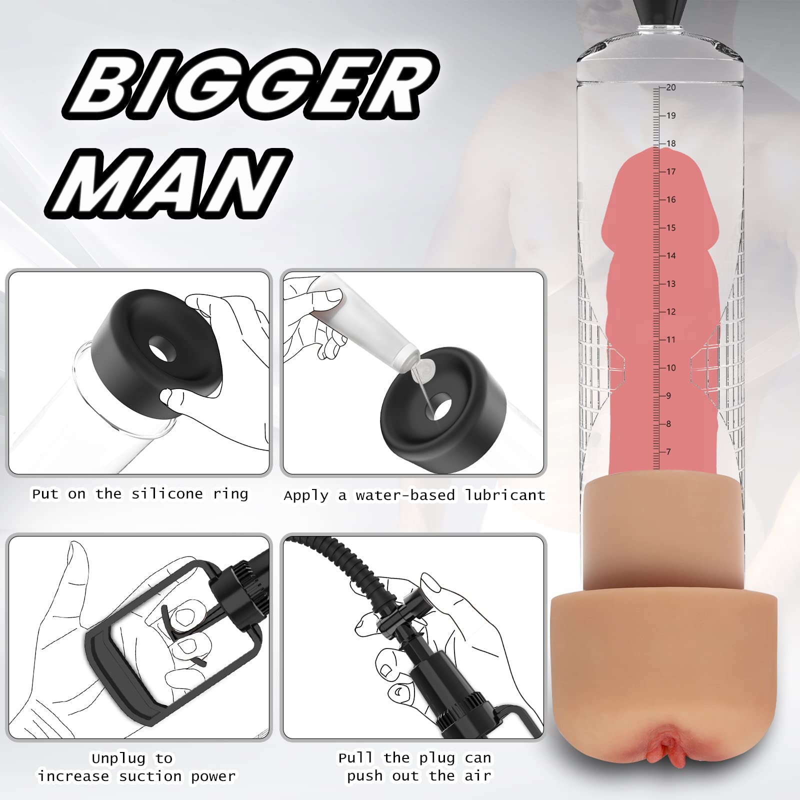 Q: How does the manual pump work?A: The manual pump creates a vacuum by simply inserting the penis into the cylinder and using the pump to increase blood circulation, leading to enhanced erection size and firmness.