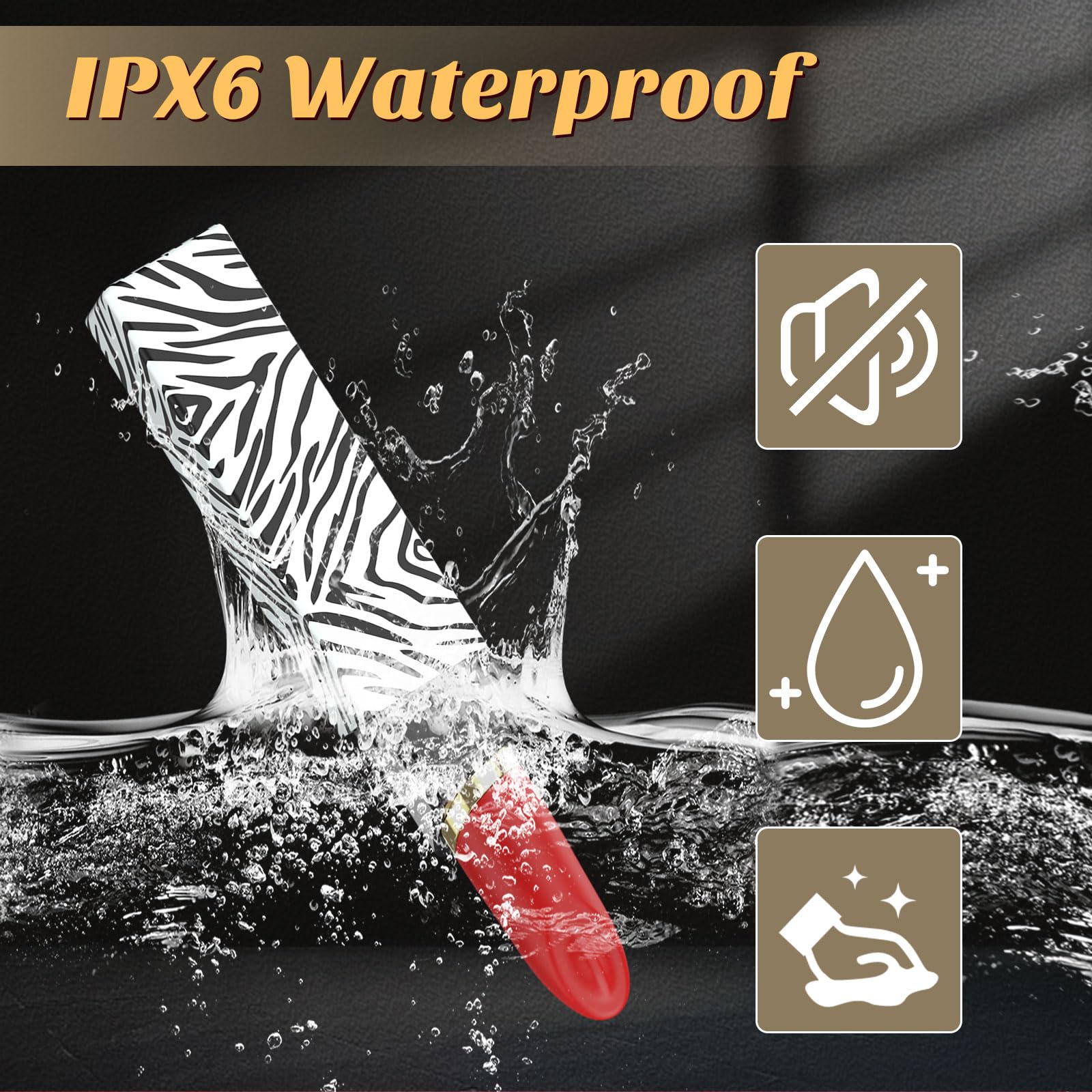 Mini lipstick design vibrator with 3 replacement heads & 10 vibration modes, use the vibrator to experience a variety of different stimuli. The high-quality skin-friendly material has an IPX6 waterproof rating, which can be used safely and easy to clean. Lipstick rose design and discreet packaging can well protect your personal privacy.