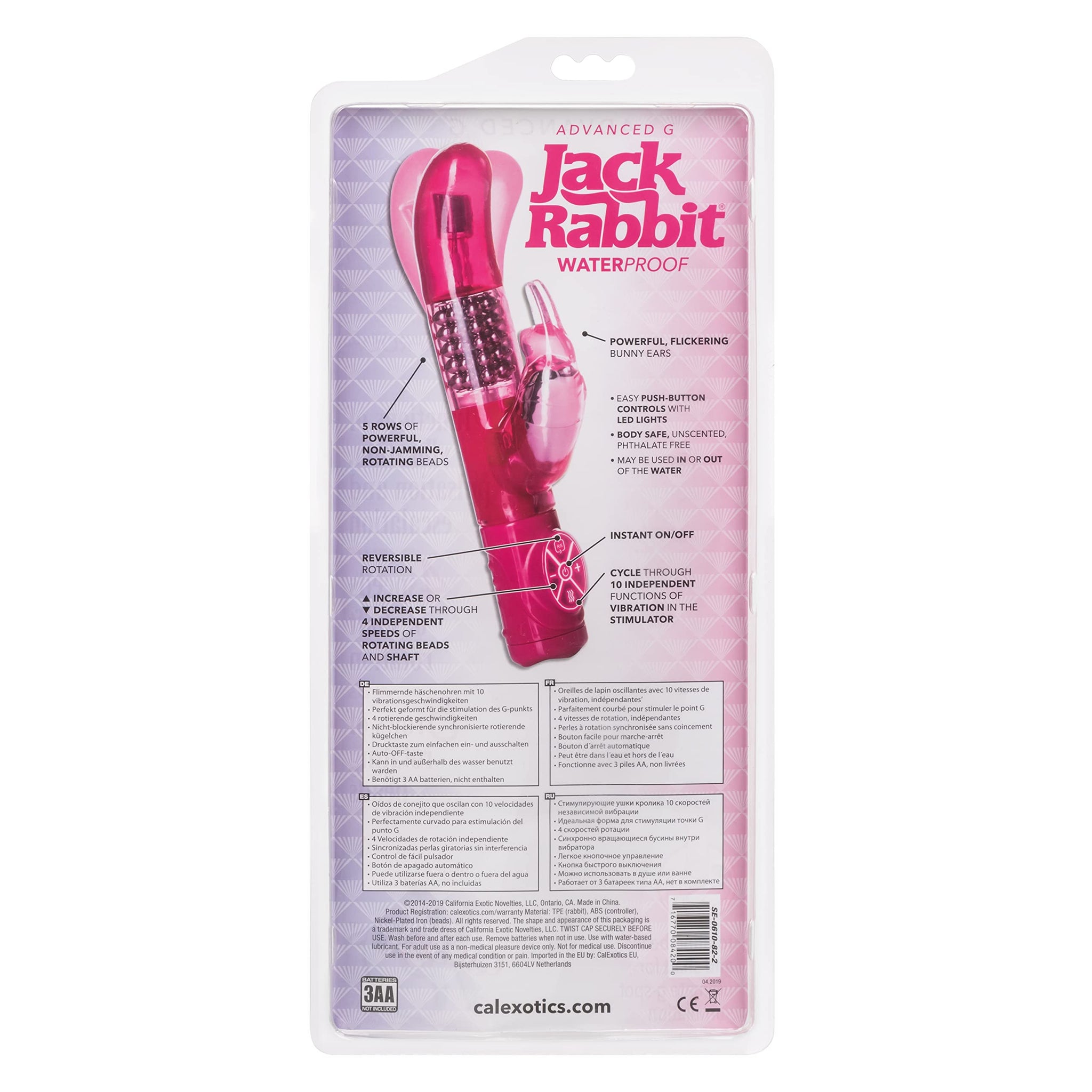 Q: What is the CalExotics Novelties Advanced G-Jack Rabbit Vibrator?A: The CalExotics Novelties Advanced G-Jack Rabbit Vibrator is a personal pleasure device designed for intense G-spot stimulation with additional features including flickering bunny ears and multiple vibration settings.