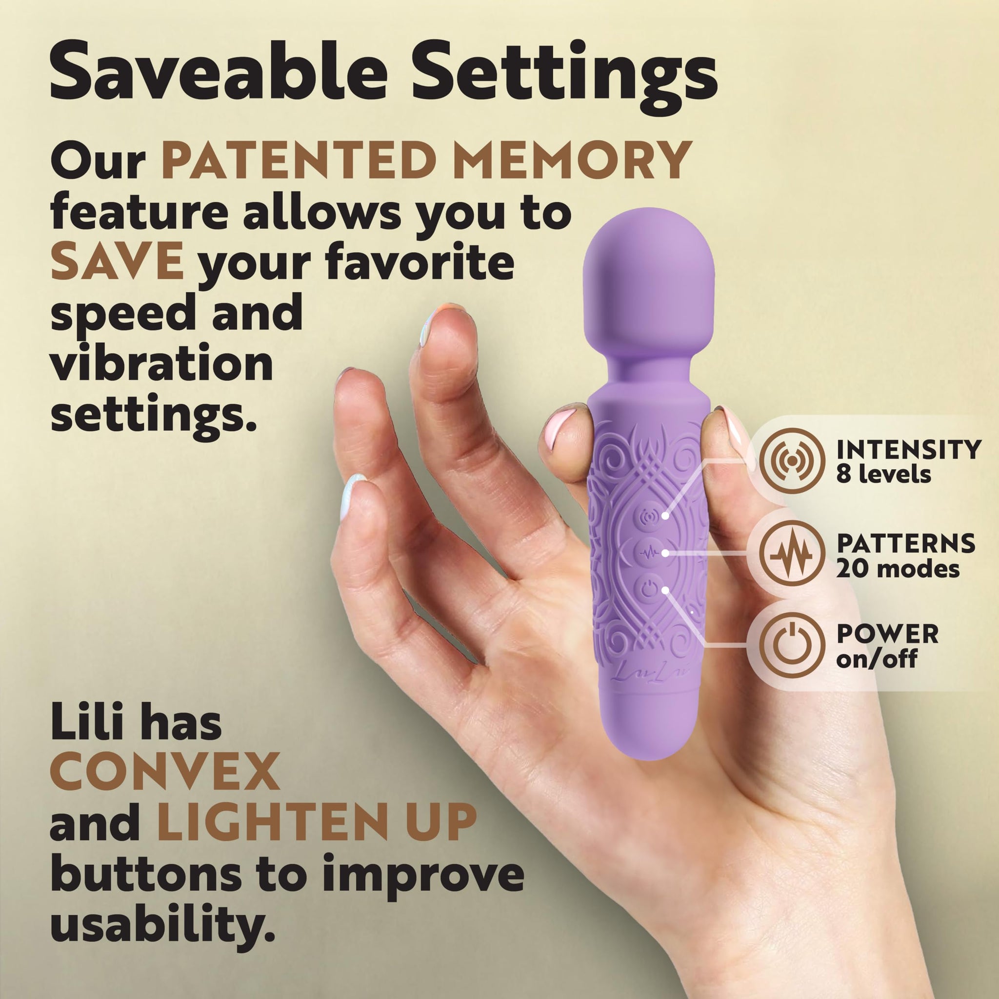 Q: How does the Memory Reset Button work?A: The Memory Reset Button on the LuLu Vibrator Wand allows users to recalibrate their experience. If you wish to reset the settings during use, simply press and hold the button to return to the initial settings.