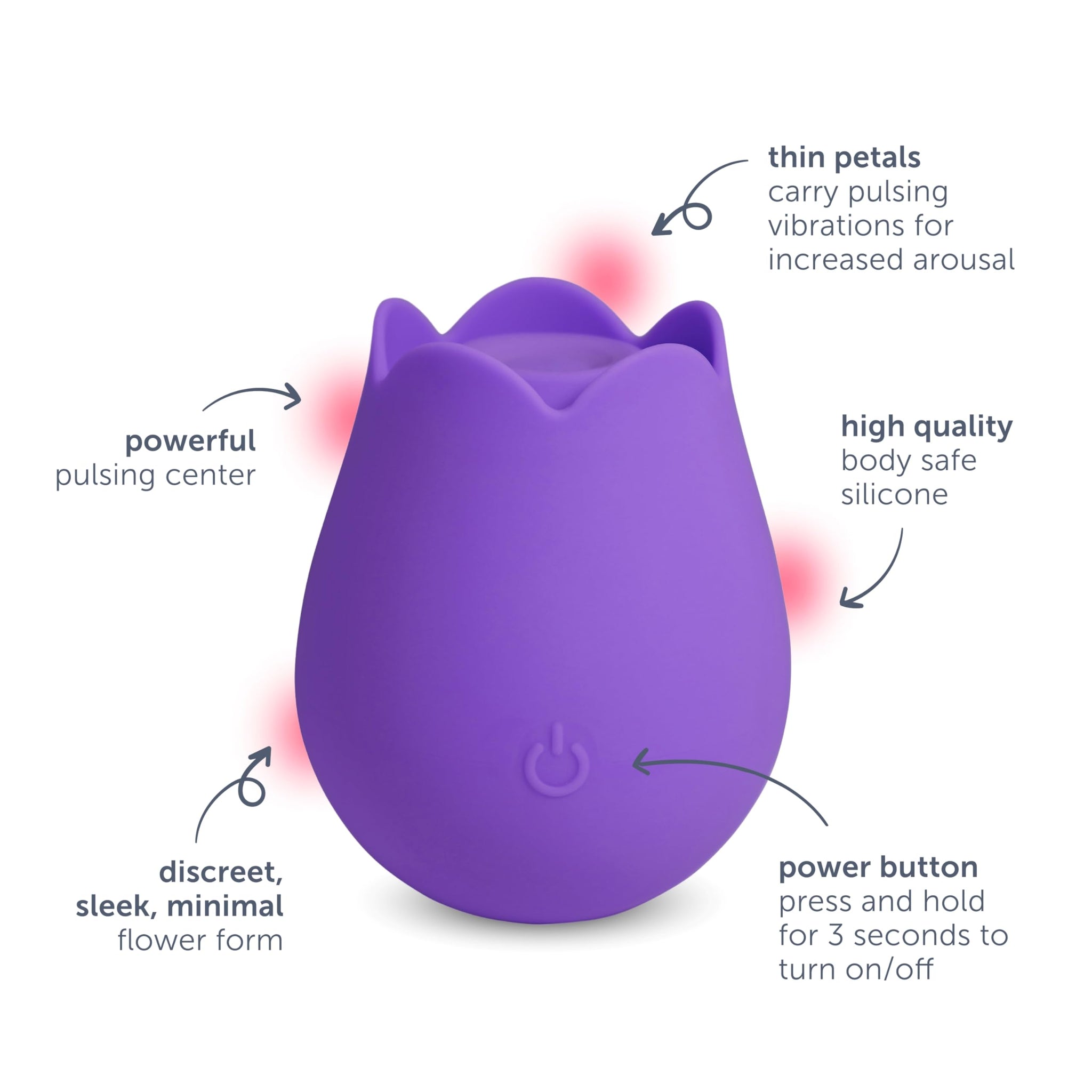 360-DEGREE PLEASURE: Experience intense clitoral stimulation with a powerful pulsing center and thin petals that carry pulsing vibrations for increased arousal | 10 PULSATING VIBES: Our powerful motor has 10 pulsing modes to explore as you experience the strong pulsing surface and vibrating petals that creates the ultimate external pleasure experience. | 100% WATERPROOF: With an IPX-7 rating, you can submerge your Rose in water for 30 minutes making it easy to clean and perfect for use in the shower or bath | HIGH-QUALITY BODY SAFE SILICONE: Featuring a soft velvety touch, Our smooth-surface vibration toys are made with body-safe silicone free of phthalates, BPA, and latex | USB CHARGING: Charging is a breeze with the included USB cable for a quick charge that offers hours of play. No need for batteries - just plug in and play