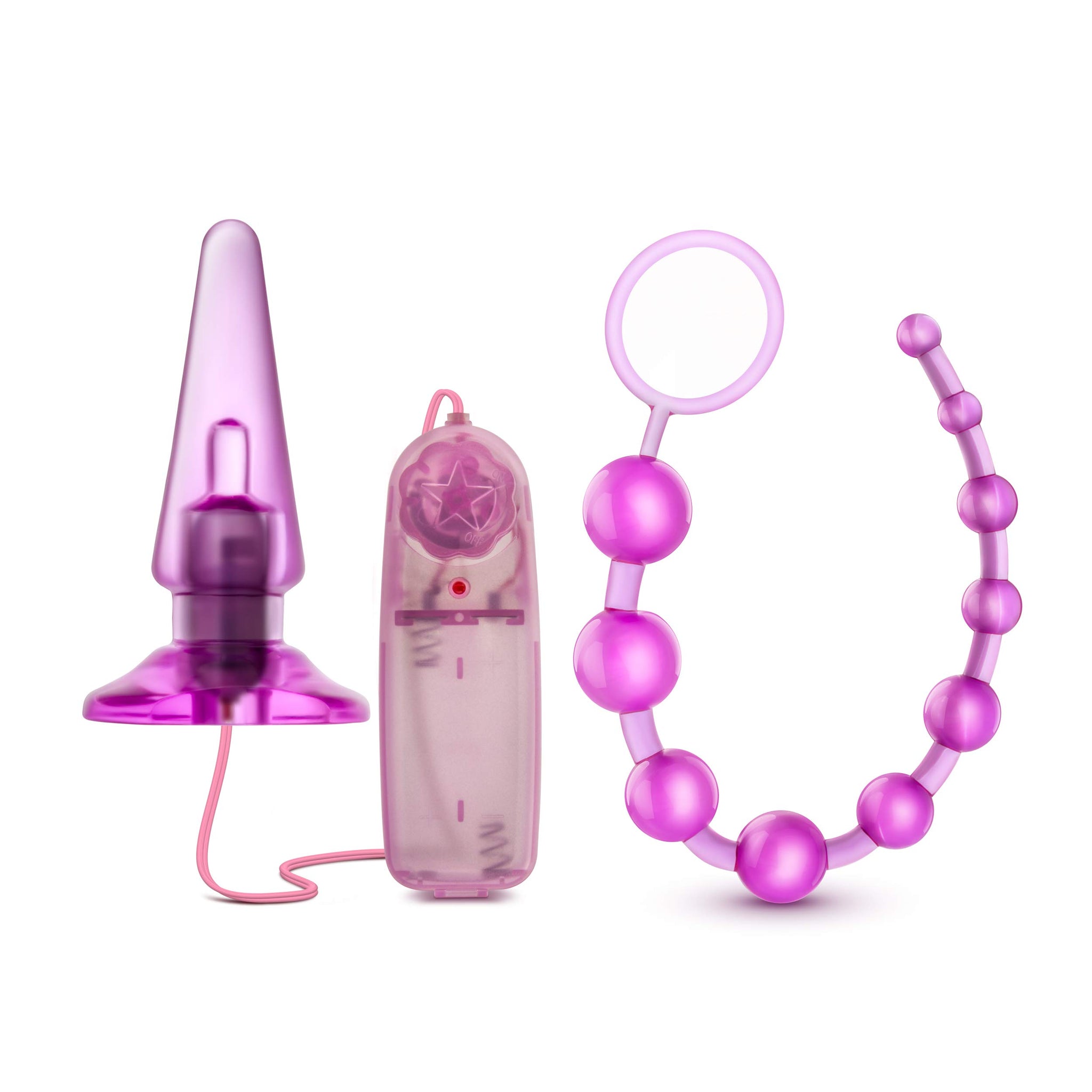 Blush Quickie Kit Vibrating Butt Plug - Anal Beads With 10 Graduated Sizes For Easy Entry - Tapered Tip - Perfect Kit For Beginners - Wired Remote Control Adjustable Vibration - Sex Toy For Adults