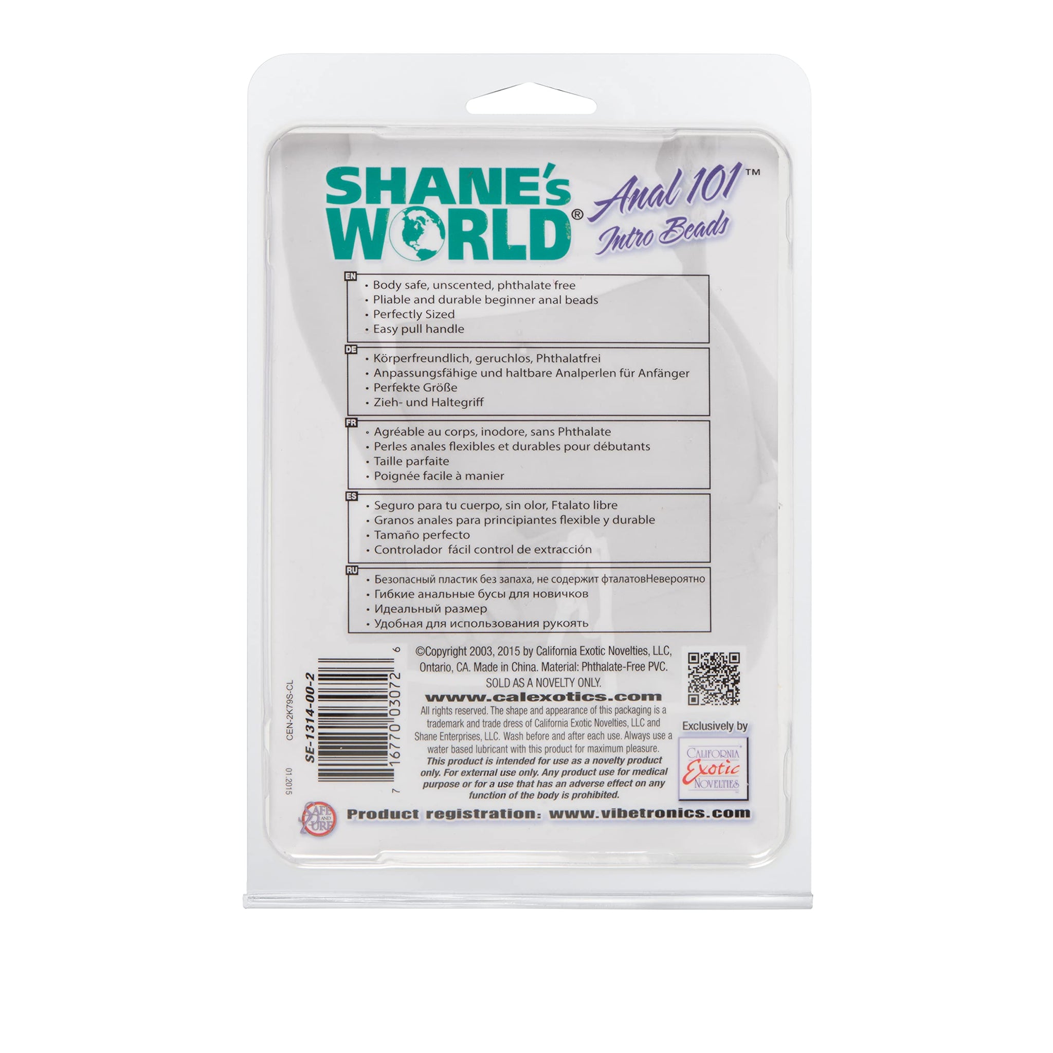 Q: What are Shane's World Anal 101 Intro Beads made of?A: The Shane's World Anal 101 Intro Beads are made from Polyvinyl Chloride (PVC), which is a durable and flexible material suitable for intimate products.
