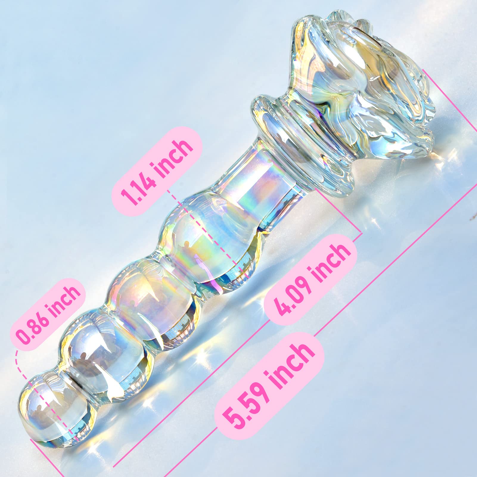 Know the features about this Glass Anal Beads: 1. Made of clear glass. silky smooth with no cracks or sharp points, non-toxic and body safe. 2. Thin neck for comfortable wearing. 3. Rose round base, looks beautiful and prevent the toy from unwanted travel. 4. 4 Gradual Beads, allows you to enjoy gradual sex pleasure. 5. Perfect for temperature play. 6. Waterproof completely, makes bath time more fun. 7. Easy to clean. 8. Unisex sex toy for men and women. Perfect for anal play. Product Specification: Size: 5.35 x 1.37 inch Material: Glass Waterproof: Yes Because the size data is manually measured. Please allow slight measurement deviation for the data. Use tips: 1. Use this product with lube, you will have a better sex experience. 2. Please clean it before and after using it.