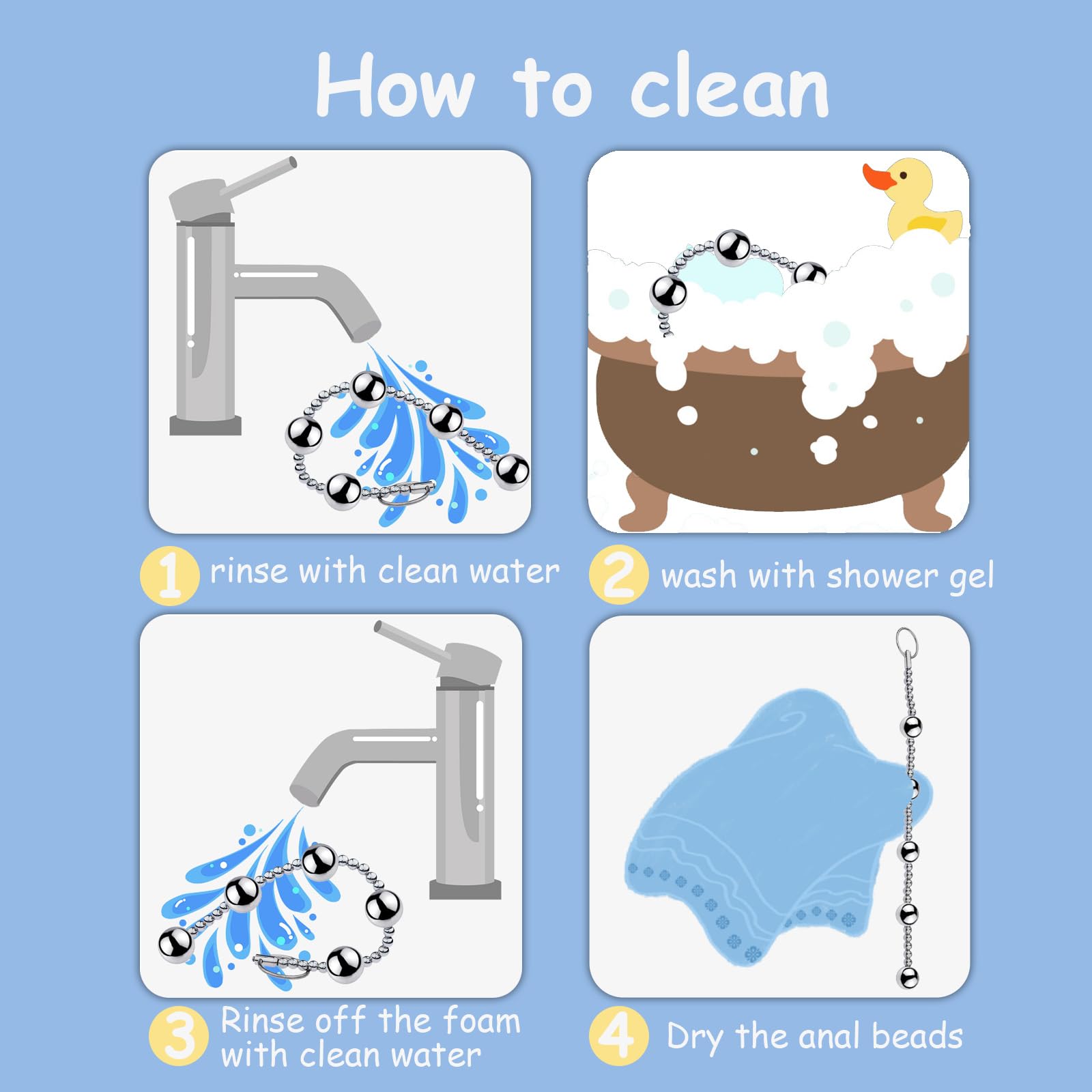 Q: How do I clean the stainless steel anal beads?A: Cleaning stainless steel anal beads is simple. Use warm water and mild soap or a dedicated toy cleaner. Ensure they are thoroughly dried before storing.