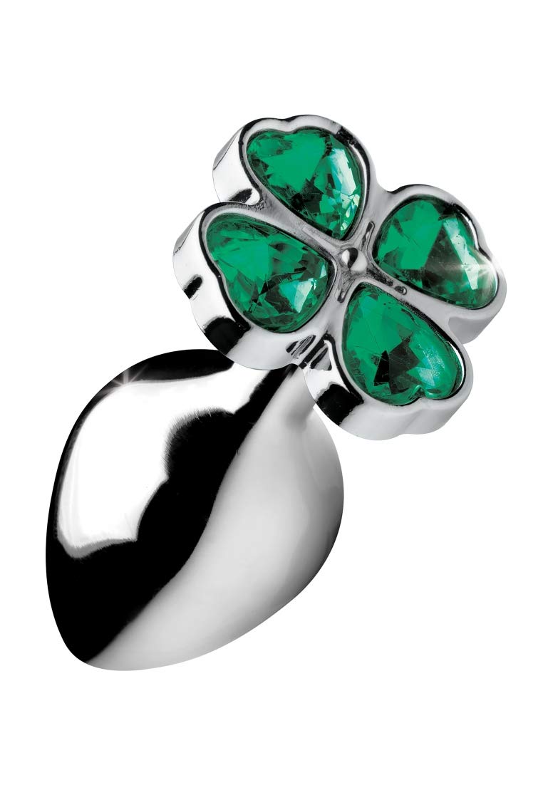 Booty Sparks Lucky Clover Gem Anal Plug Medium from XR Brands. Make that booty get lucky with this medium metal anal plug with a clover jewel design at the base! Pop this lucky charm in your pot of gold to appreciate the comfortable weight inside your bod