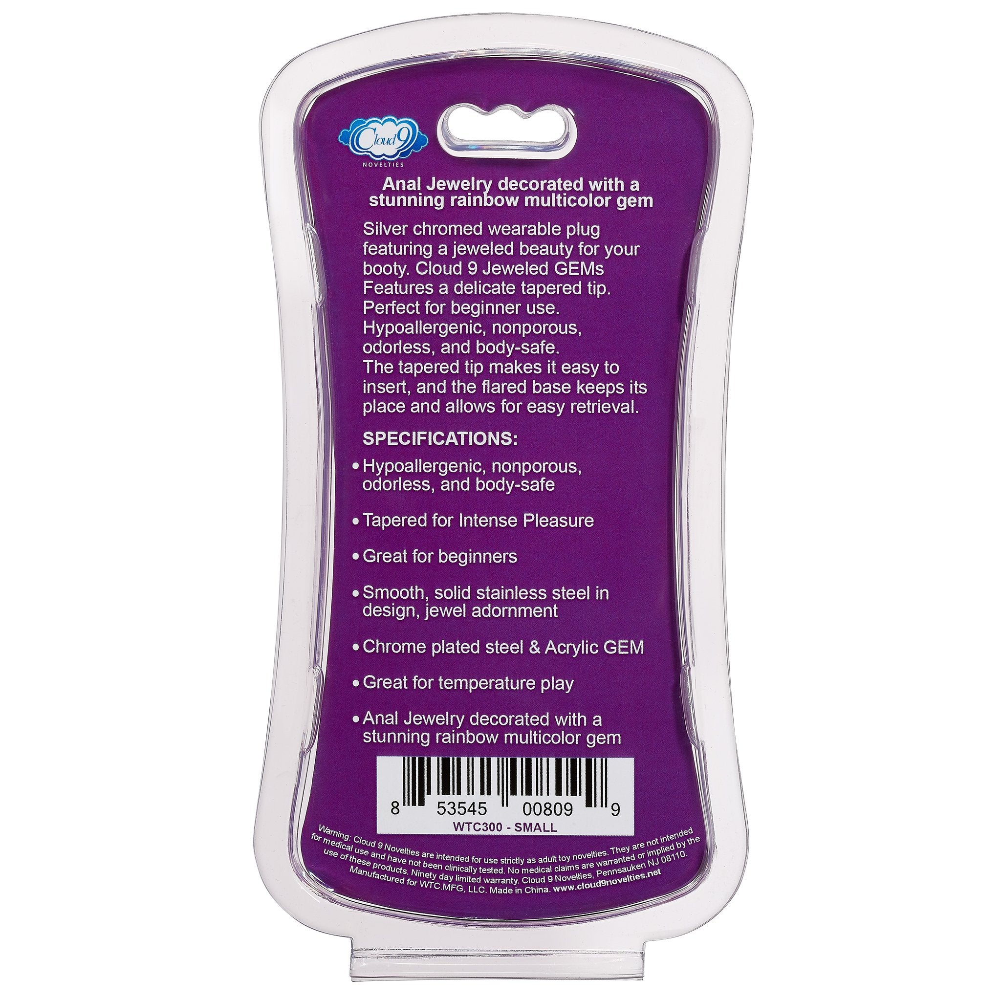 Anal Jewelry Decorated With A Stunning Rainbow Multicolor Gem. Silver Chromed Wearable Silicone Plug Featuring A Jeweled Beauty For Your Booty. Cloud 9 Jeweled Gems Features A Delicate Tapered Tip. Perfect For Beginner Use. Hypoallergenic, Nonporous, Odorless, And Body-Safe. The Tapered Tip Makes It Easy To Insert, And The Flared Base Keeps Its Place And Allows For Easy Retrieval.