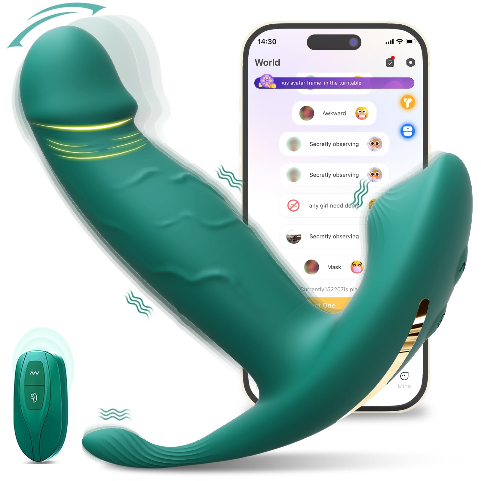 Specifications: Material: Silicone+ABS Weight: 127g Size: 133*130*32mm Noise:=50db Function: 9+9modes 9 Vibrations 9 Wiggles Color: Green Charger: 5V/1A,2A Battery: 3V Lithium Battery Coin Cells Charging: USB magnetic charging Package includes: 1 x Vibrator 1 x USB Charging cable 1 x Remote Control 1 x User Manual Precautions: 1.This product is an adult toy and is forbidden by minors. 2.It is recommended to use it with a condom and water-based lube. 3.If you feel uncomfortable during use, stop using it immediately.