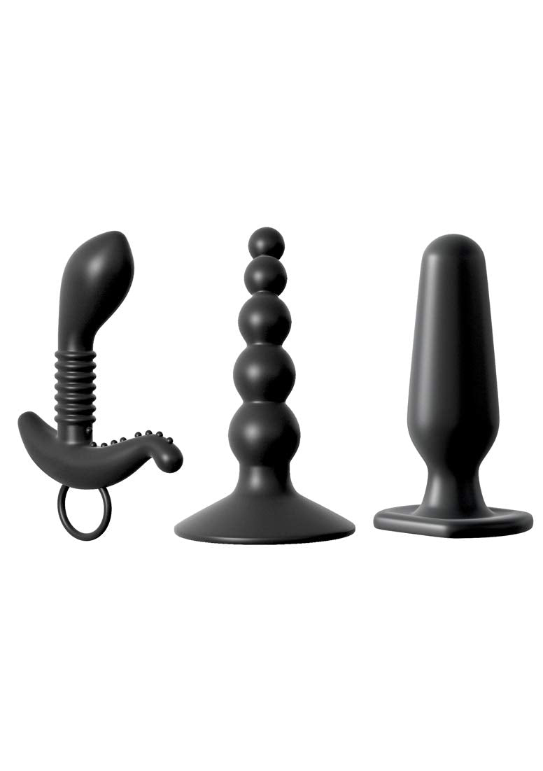 This Beginners-Friendly 3-Piece Sampler Lets You Choose Between A Tapered Butt Plug An Angled Prostate Probe And Anal Beads On A Curved Suction Cup. All Three Pieces Are Made From Elite Silicone And Designed To Excite The Right Spot Every Time.BrBrThe Small Starter Plug Has A Round Tapered Tip Flanged Neck And Flared Bottom Base. The Smooth Plug Fits Comfortably And Can Be Worn All Day. The Anal Beads Have A Wide Suction Cup Base A Ball-Point Tip And Five Graduating Beads To Fill You Up. The Shaft Is Firm But Flexible And Designed To Tease And Please. The Prostate Pleaser Also Features A Tapered And Angled Bulbous Tip To Ease Insertion. The Ribbed Shaft Offers Internal Pleasure While The Sturdy Retrieval Ring Ensures Safe Removal And Easy Handling. One Side Of The Base Fits Snugly While The Textured Nubs On The Other Side Provide External Pressure To The Perineum.BrBrThe Prostate Pleaser Is 3.1 In. Long Insertable And 0.83 In. Wide. The Anal Beads Are 3.5 In. Long Insertable And 0.94 In. Wide. The Starter Plug Is 2.6 In. Long Insertable And 0.9 In. Wide.