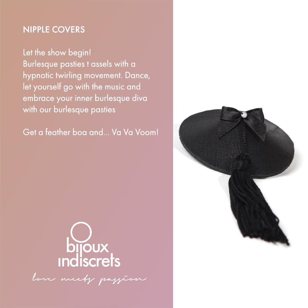 Vavavoom you are a vision of glamour and sensuality with these leather and satin tasseled pasties that pay homage to the 19th century stage queen each metal gift box slides open and contains on set of these luxury pasties and adhesive tape CLASSIC BURLESQUE PASTIES: These burlesque pasties with tassels Because of their thickness and matte finish tassles black nipple covers concealers tend to do a better job than mesh bralettes or sports bras at masking erect nipples. Easy to apply and so comfortable to wear. In the mood for seduction? Let the show begin! Burlesque pasties tassels with a hypnotic twirling movement. Dance let yourself go with the music and embrace your inner burlesque diva with our burlesque pasties. | FROM THE STAGE TO YOUR BEDROOM: Burlesque pasties are essentially a celebration of the female body encouraging women to love their bodies and be comfortable in their own flesh. Burlesque pasties are the ideal accessory for every situation whether you're a burlesque performer trying to spice up your act or just someone who wants to spice up their lingerie collection. | COMFORTABLE AND EASY TO USE: The pasties nipple covers sexy are reusable waterproof and Easy and painless to remove. Wear them under a shirt or dress or even at the beach Secret Party or your wedding anniversary under your bikini. It