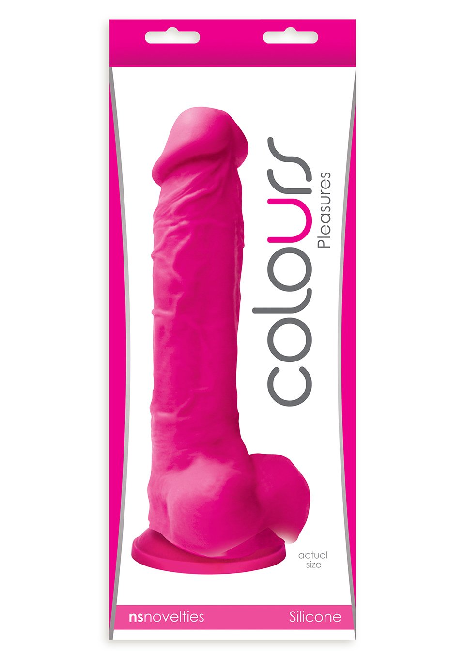 Q: What colors is the dildo available in?A: The NS Novelties Colours Pleasures Silicone Dildo is available in midnight black and electric pink.