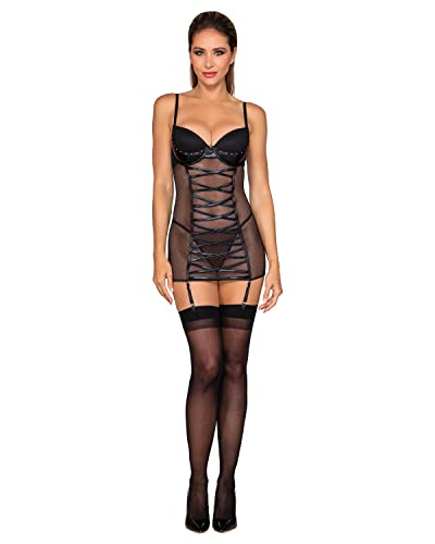 Fishnet And Faux Leather Garter Slip Featuring: UlLiDecorative Lace-Up Front With Metal Stud DetailLiLiUnderwire Molded Push-Up CupsLiLiAdjustable Shoulder Straps And Hook And Eye Back ClosureLiLiRemoveableAdjustable Garter StrapsLiLiMatching G-String IncludedLiLiShown With Style #0007 Thigh-Highs; Sold SeparatelyLiUlBrSize 1X: Size 16-18 Cup DDd Weight 180-220 Lbs. Bust 44-46 Waist 38-40 Hip 46-48