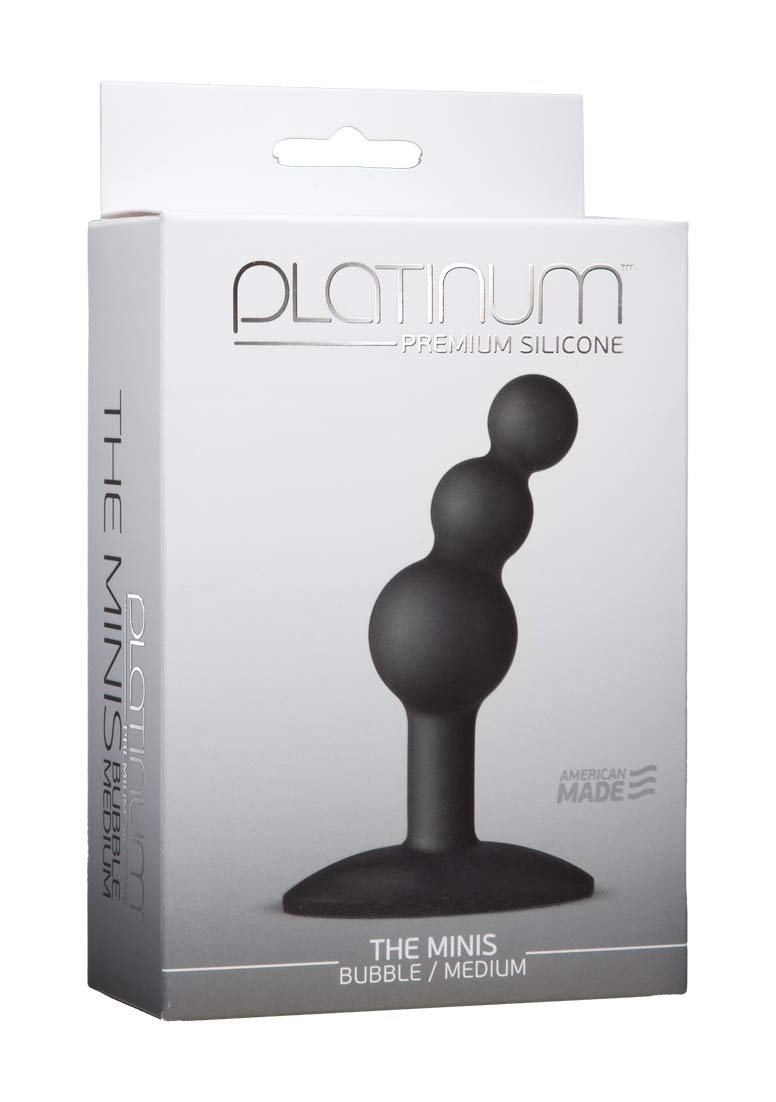 Youre sure to enjoy some serious satisfaction with this petite Bubble Made of Platinum Premium Silicone this anal plug features three graduated beadlike ripples for increased stimulation a velvety matte finish ergonomic flat base and ultraflexible design for easy wearability The perfect size for beginners the Bubble Mini in size Medium offers 35 in usable length with a 1 diameter Available in Black and Pink Hypoallergenic and Phthalatefree Proudly Made in America Approximate Product Dimensions: Anal Plug; Total Length: 4 in. (10.2 cm) Insertable Length: 3.5 in. (8.9 cm) Width/Diameter: 1.25 in. (3.2 cm) Circumference: 3.75 in. (9.5 cm) | Health-Grade Platinum Premium Silicone | Perfect for Beginners | Graduated Bulb Design For Added Stimulation | Firm Yet Flexible | Wide Base for Safe Comfortable Use | Warms to Body Temperature | Easy to Clean Top Rack Dishwasher-Safe | Hypoallergenic Nonporous and Odorless | Phthalate-Free Body-Safe | Proudly Made in America