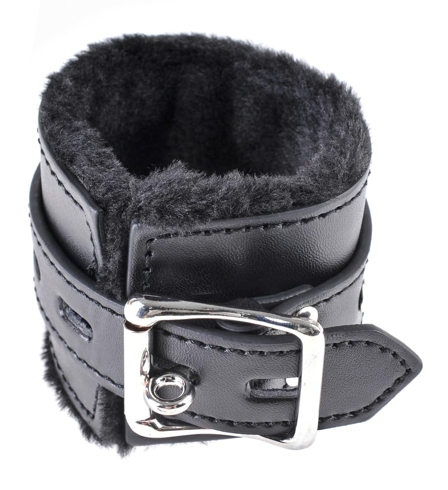 Q: What is the purpose of the faux fur lining?A: The faux fur lining provides a sensuous feel that enhances the experience of restraint, adding an element of comfort and pleasure.