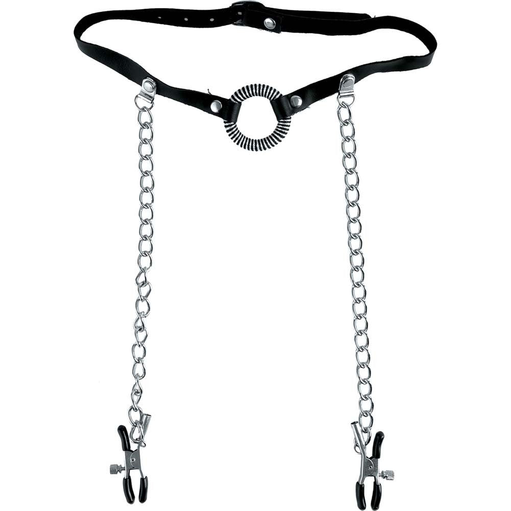 PGet Your Lover To Open Wide And Say Ahhhh With This Naughty O-Ring Gag With Nipple Clamps. The Gag Consists Of A Small Metal O-Ring Wrapped In Leather Connected To Two Sturdy Leather Straps. Two Chained Nipple Clamps Keep Your Nipples Perky And The Coated Clamps Easily Adjust To Fit Your Desired Tension. The Leather Straps Adjust To Fit Most Sizes Pulling The Ring Tight And Keeping The Mouth Open Wide. YouRe In Control Over When And How Often Your Lover Speaks...What You Do Next Is Up To You!P