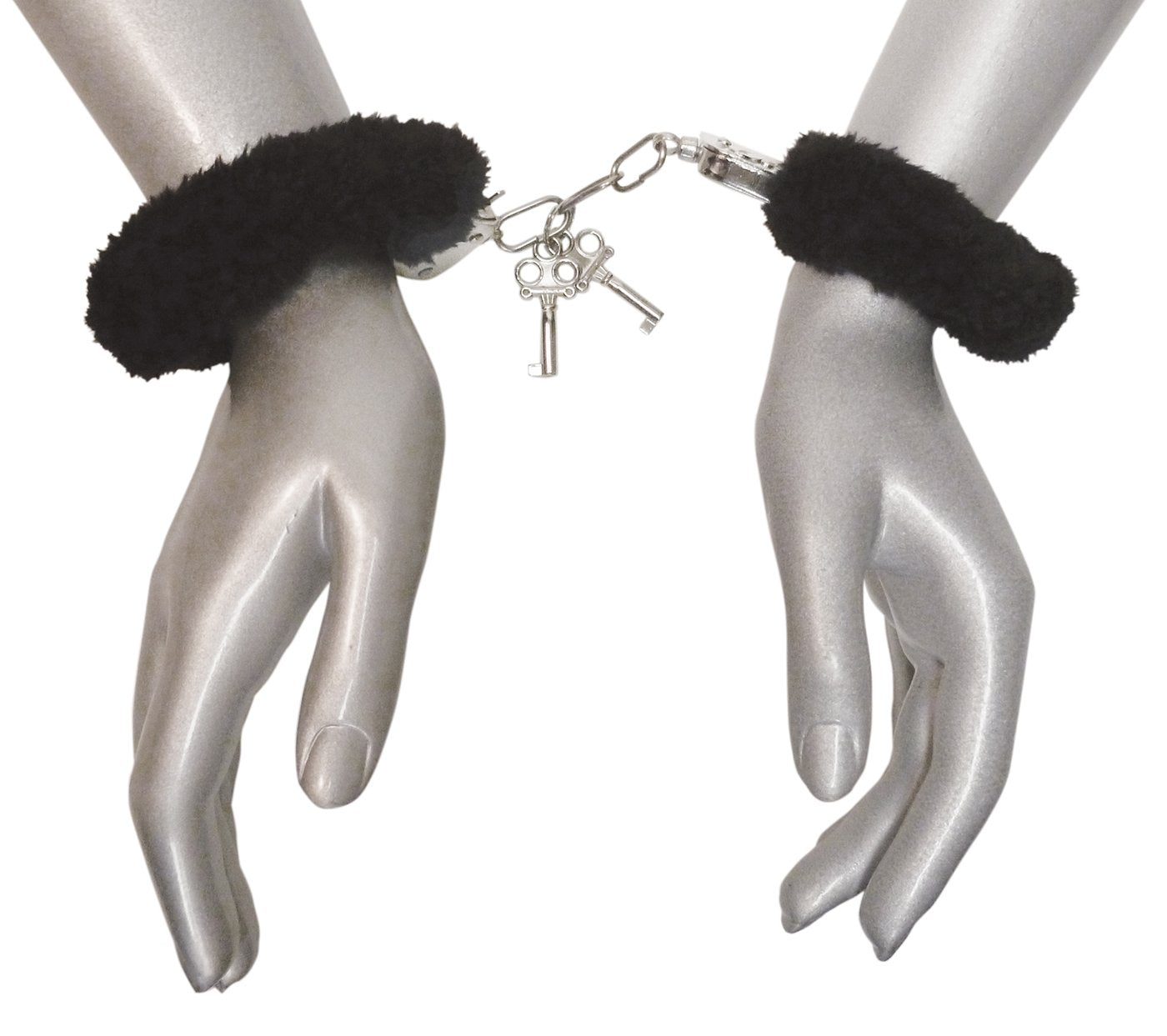 Submit comply and consent to a sexual unfolding as your lover pulls your arms above your heador behind your back leaving you waiting and wanting Courtesan Cuffs by esinM will assist you in your adventure into the land of BDSM with the softness of fur and the cool strength of metal wrapped firmly around your wrists Durable and easy to use the Courtesan Cuffs are adjustable to ensure a comfortable experience Locks on both cuffs a set of two keys and a chain connector that allows for looping other bondage restraints through for even more play Measurements Cuffs adjust from 5 to 8 inches in inner circumference Color Silver cuffs with Black faux fur Note: This is NOT real fur | Actual working metal handcuffs with a quick release feature | Ideal for tantalizing bondage play | The stylish black faux fur will look great around the wrists of your lover