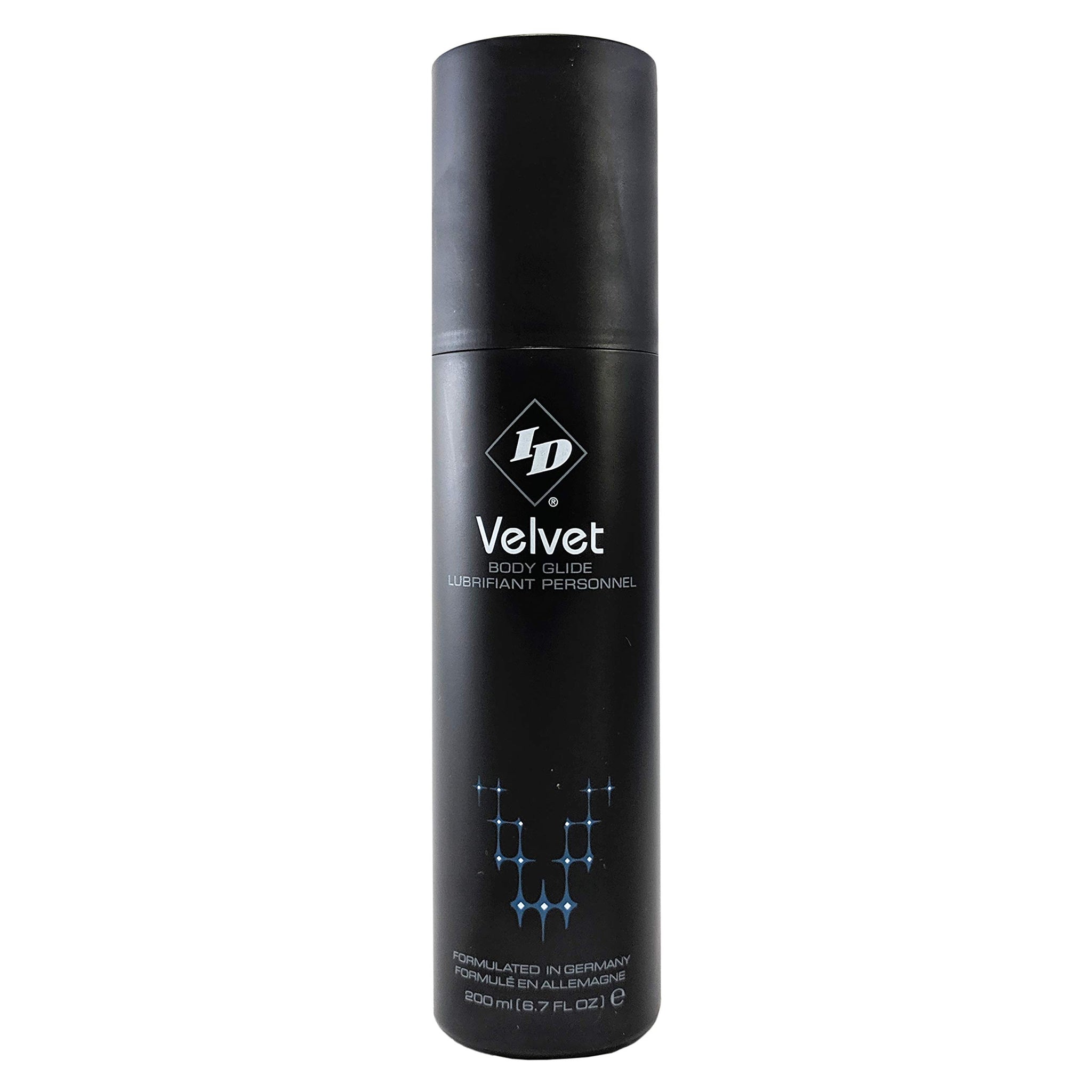 H3Id Velvet (6.7Oz)H3Br Br PFormulated In Germany Id Velvet Body Glide Is One Of The Most Luxurious Of All Lubricants. Id VelvetS Unique Super Premium Formula Is Extra Long Lasting Latex Compatible And Fragrance Free. Never Sticky Or Tacky This Velvet Smooth Lubricant Also Serves As A Fantastic Skin Conditioner And Moisturizer.PBr Br PSilicone Based. Waterproof. Phthalates Free. Latex Compatible. 6.7 Fluid Ounces.PBr Br P P
