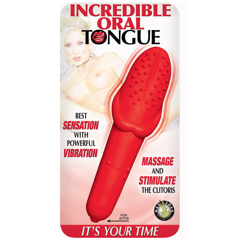 Q: What is the Incredible Oral Tongue Waterproof Red?A: The Incredible Oral Tongue Waterproof Red is a clitoral vibrator designed to resemble a tongue, made from body-safe silicone and ABS materials.