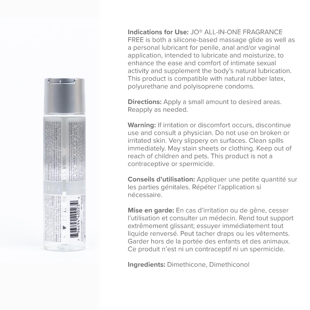 Q: Is JO All-in-One Massage Oil fragrance-free?A: Yes, JO All-in-One Massage Oil is fragrance-free, making it ideal for those sensitive to scents.