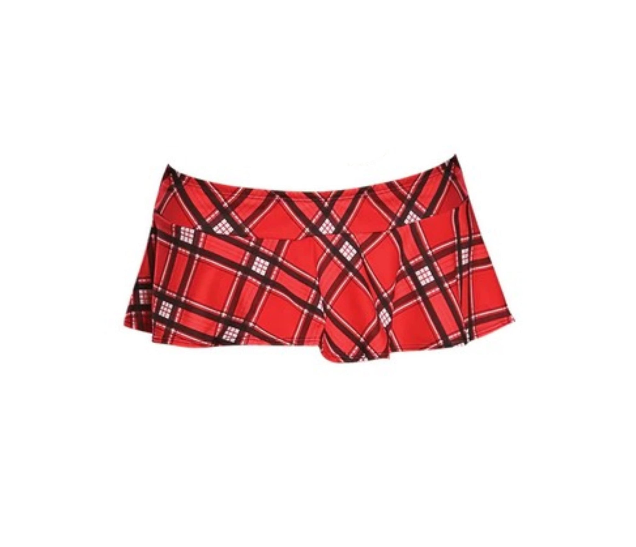 Q: What does the set include?A: The set includes a micro mini-skirt with a flutter hem and elastic waist, a satin blindfold with ruffle trim and plush elastic strap, and a 40-inch satin easy-tie bondage restraint.