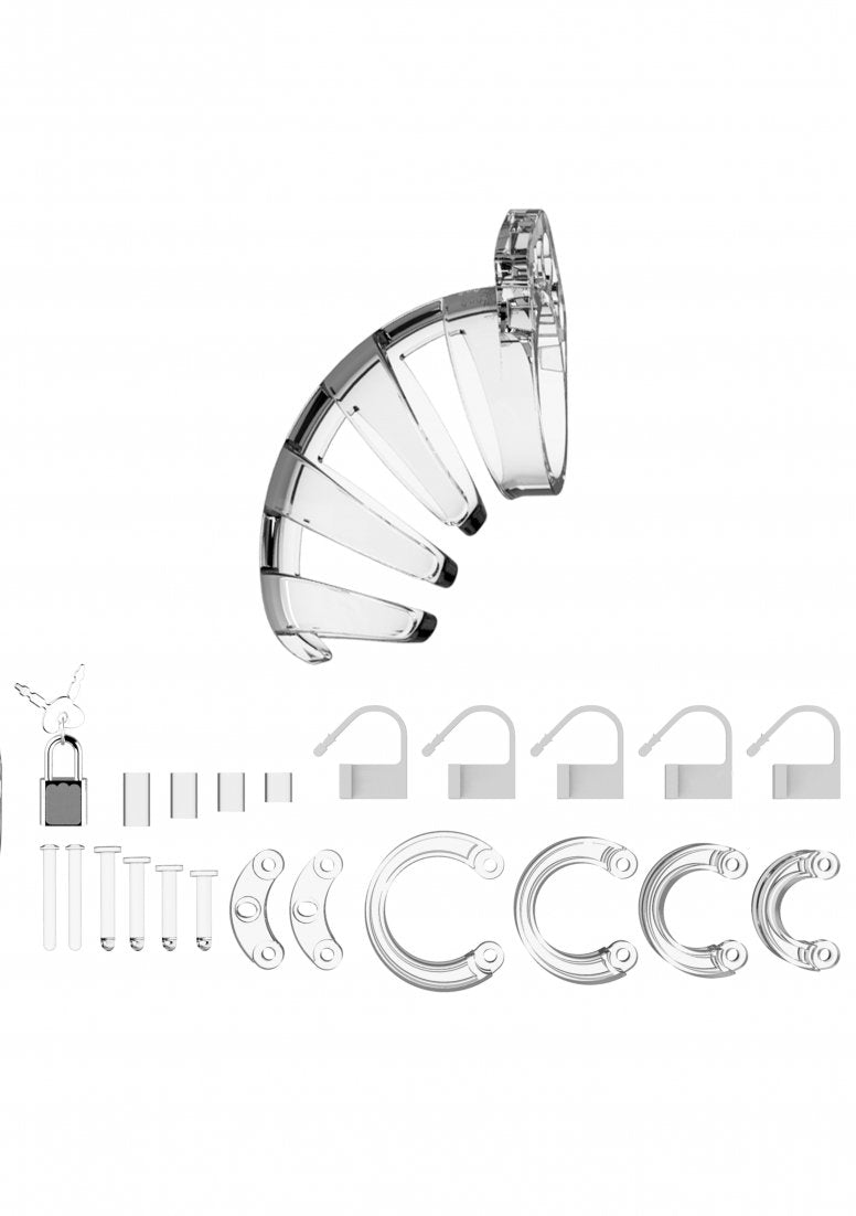 Cage Is Manufactured From High-Grade Polycarbonate A Light Durable And Hypoallergenic Material. Consists Of Three Parts Which Fit Together Perfectly. Two Guidance Pins Connect The Top Parts And The Oval Taper Pin Connects The Rings With The Cage. A Variety Of Rings In Different Sizes And Distance Pieces Allow You To Create The Right Size. The Rings Have A Comfortable Fit And Are Safe. A Metal Lock Or Tie-Wrap Lock Can Easily Close The Cage. Equipped With A Variety Of Vents And A Urination Opening. The Cage Makes It Impossible To Get An Erection. Waterproof. Length Is 3.54 In. Outside Diameter Of Adjustable Rings Is 1.77 1.97 2.17 And 2.36 In.