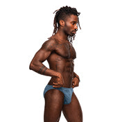 Q: What color options are available for this jock brief?A: The Male Power 301-274 Inter-Mingle jock brief is available in a Moonshine color blue.