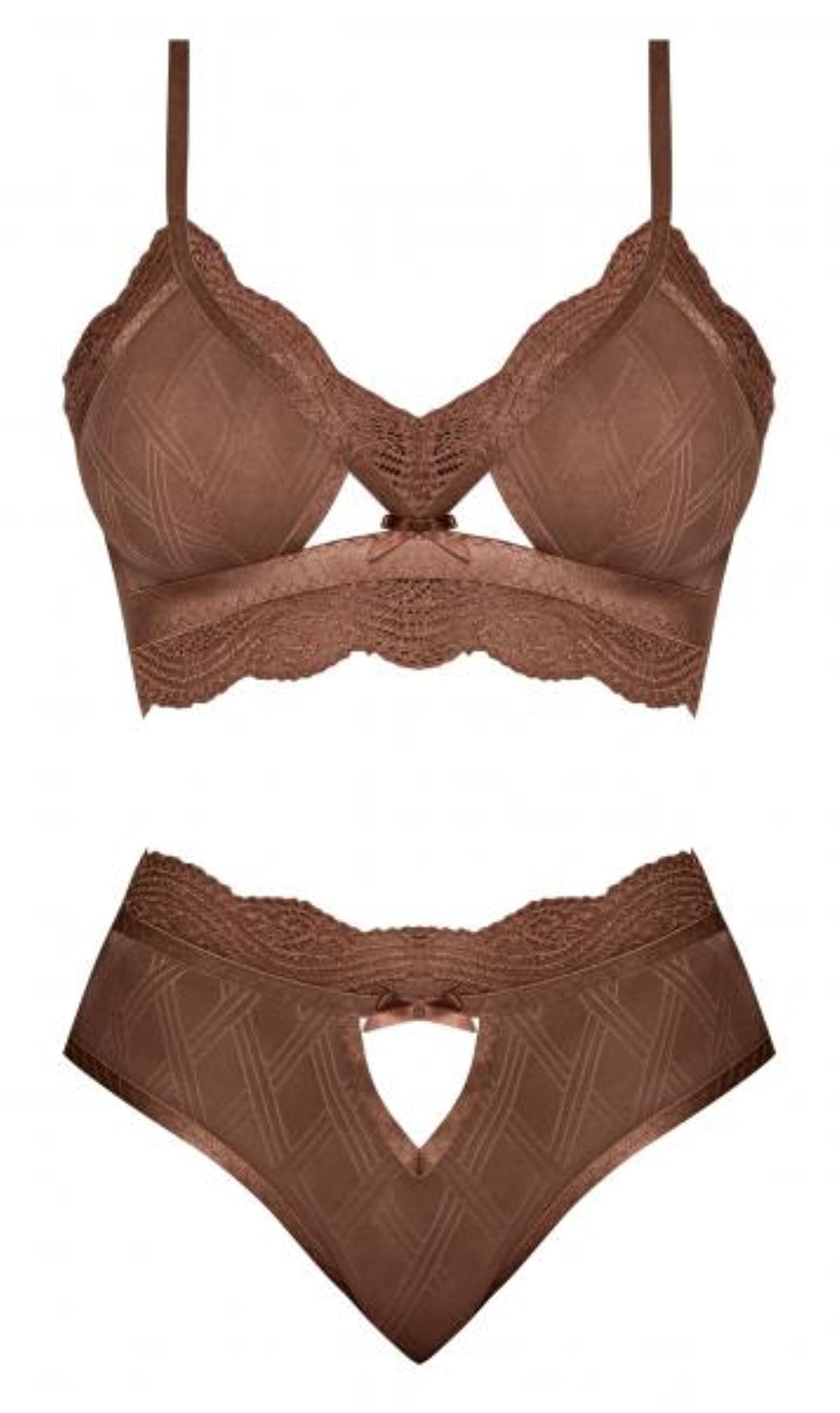 From The Exposed By Magic Silk Collection This Style Includes: A Lace-Trimmed Triangle Bralette Featuring Small Cutout Designs In The Front Adjustable Shoulder Straps With Gold-Tone Sliders Hook-And-Eye Closure In Back And A Matching Panty With A Peek-A-Boo Design In The Front And A Strappy Open-Style Back. BrBrStretchy Jacquard Mesh And Soft Lace In Caramel With Sleek Gold Metal Hardware.