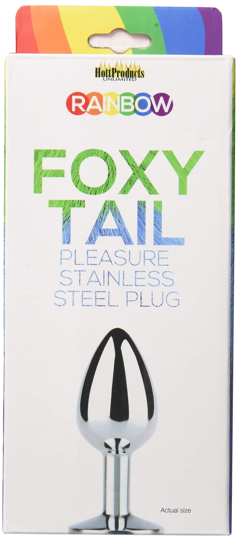 Q: What is the material of the Hott Products Unlimited Rainbow Foxy Tail Butt Plug?A: The Hott Products Unlimited Rainbow Foxy Tail Butt Plug is made of high-quality stainless steel.