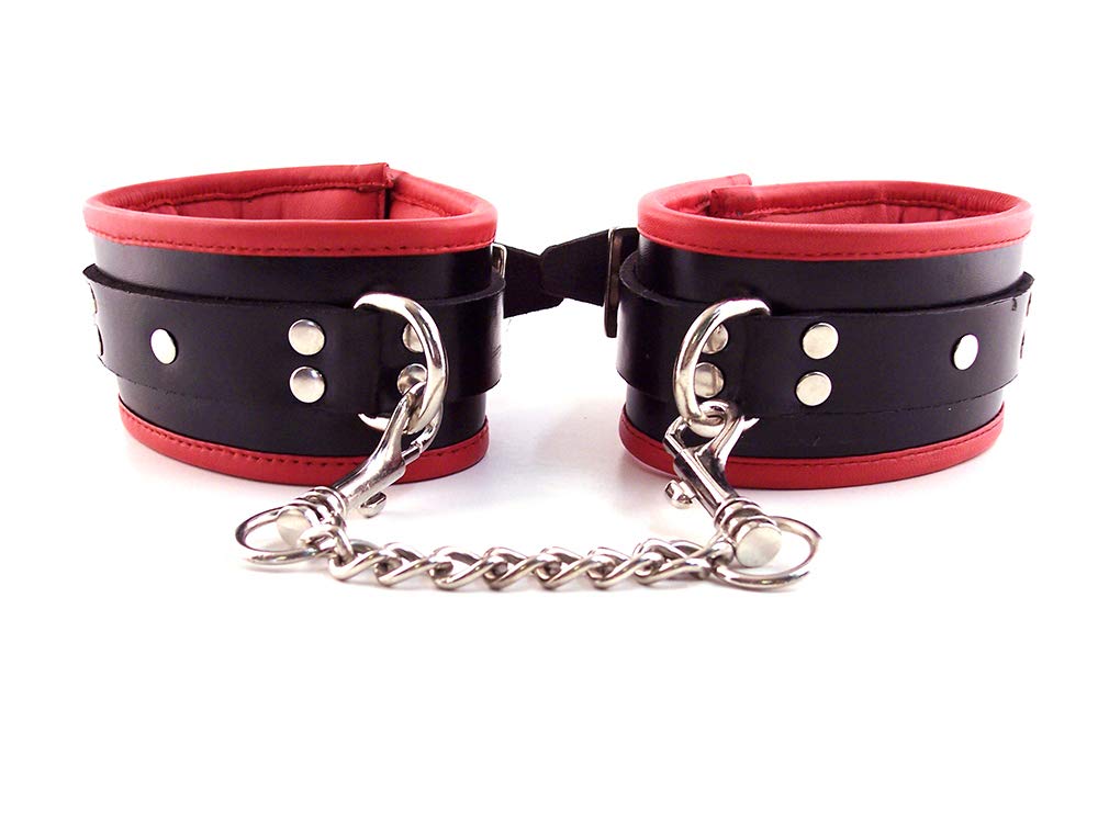 Q: What colors are available for the ROUGE GARMENTS Padded Ankle Cuffs?A: These ankle cuffs are available in a striking black and red color combination.