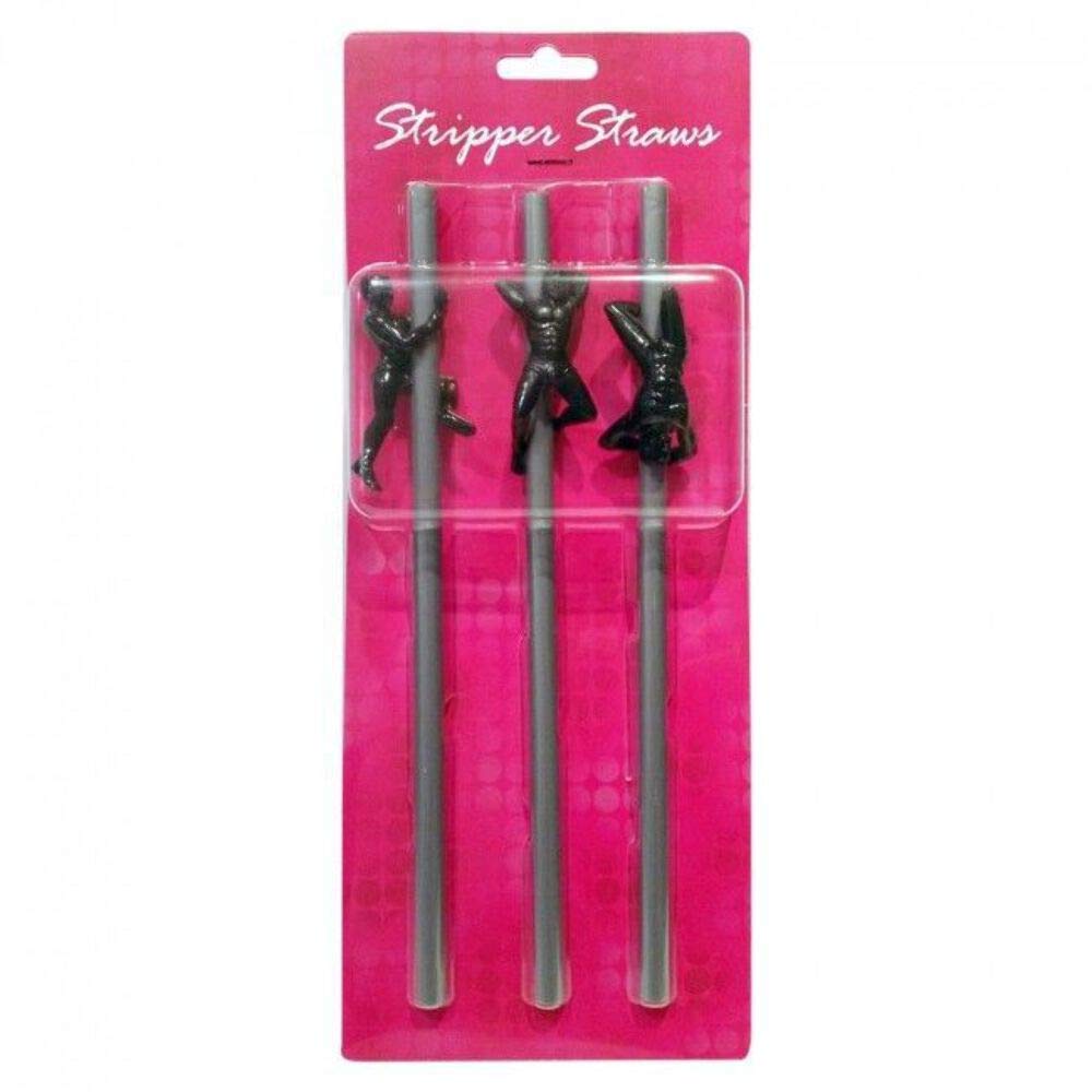Package Contains 3 Silver-Colored Straws With Plastic Figurines Of Male Strippers Attached To Each One. Strippers Can Be Moved Up And Down Their Poles To Accommodate Various Cup Sizes. Straws Are 8.5 In. Tall. Br