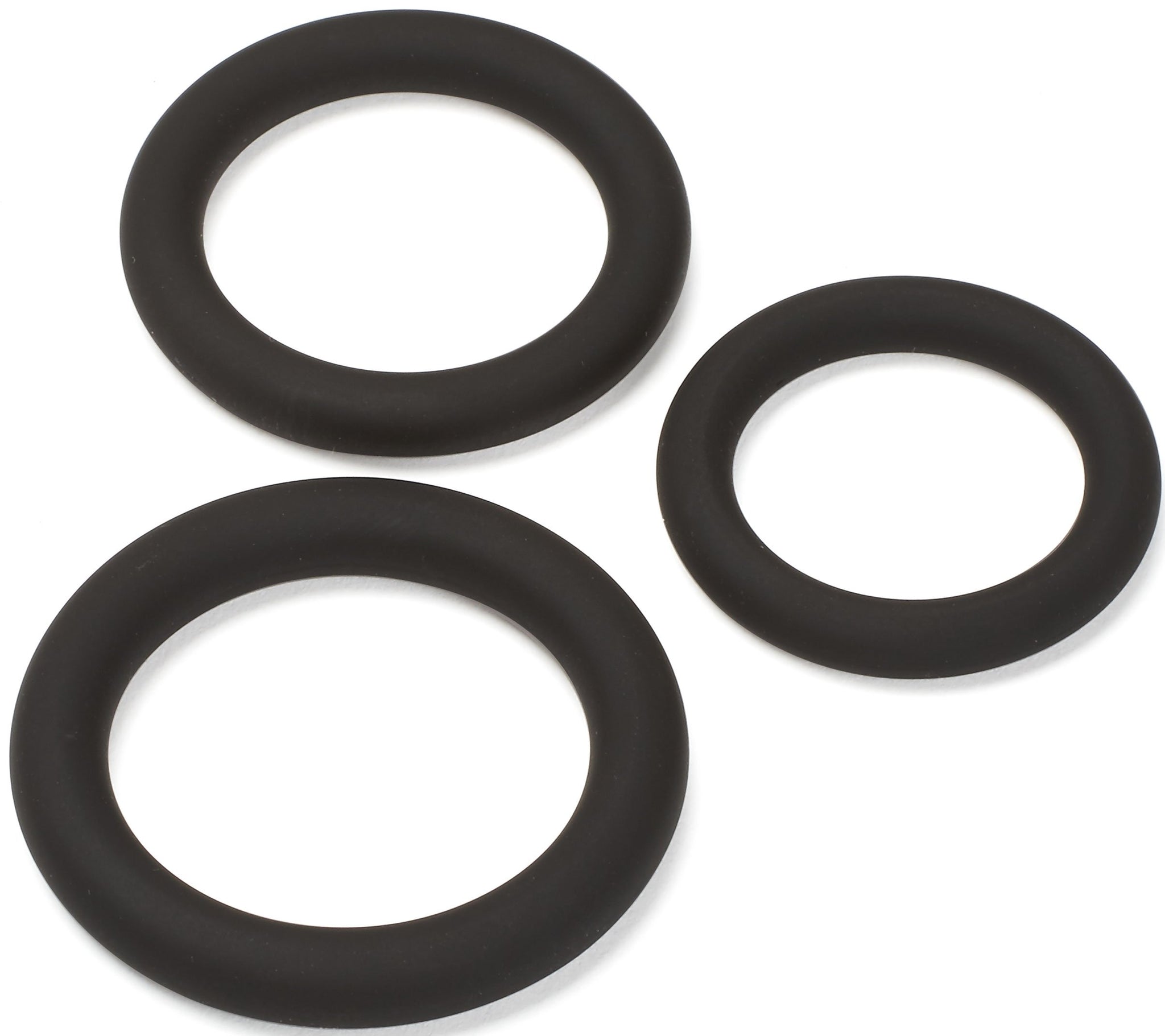 A: The set includes three cock rings with inner diameters of 1.188 inches, 1.031 inches, and 0.88 inches.