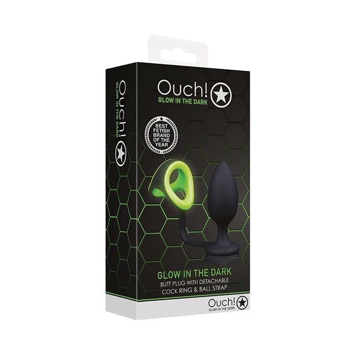 A: The Ouch GITD Plug comes with the plug, a cock ring, and a ball strap, all designed for a complete experience.